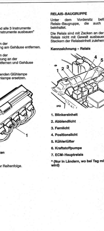 Hallo zusammen, ich suche aktuell nach der Ursache für einen Wackelkontakt an den Scheinwerfern. Ich habe am Schalter am Lenker angefangen und wollte als nächstes zwischen besagtem Schalter und den entsprechenden Relais messen, ob sich da zwischen ein Kabelbruch versteckt. Als nächstes hätte ich dann zwischen Relais und Scheinwerfer gemessen. Nach dem Blick unter den Sitz bin ich jetzt allerdings verwundert: - das Kabel am Kippschalter, das das Abblendlicht schaltet (am Schalter rot-schwarz, nach dem Stecker blau-weiß) ist an dem Sockel unten links angeschlossen, an dem kein Relais eingesteckt ist. - selbe Geschichte mit dem Fernlicht: Kabel (am Schalter rot-gelb, nach dem Stecker blau-rot) ist ebenfalls an einem leeren Sockel (zweiter von links in der Reihe) angeschlossen Kann mir bitte jemand erklären, wo mein Denkfehler ist? Das Licht hat ja mal funktioniert, also kann es nicht an dem leeren Sockel liegen. Generell bin ich verwundert, dass da nur 3 Relais sitzen. Laut Wartungshandbuch sollten es 7 Stück sein. Außerdem habe ich einen Stecker gefunden, den ich nicht zuordnen kann. An diesem sind einfach 2x 2 Pins kurzgeschlossen. Soll das so sein? Danke schonmal im Voraus -