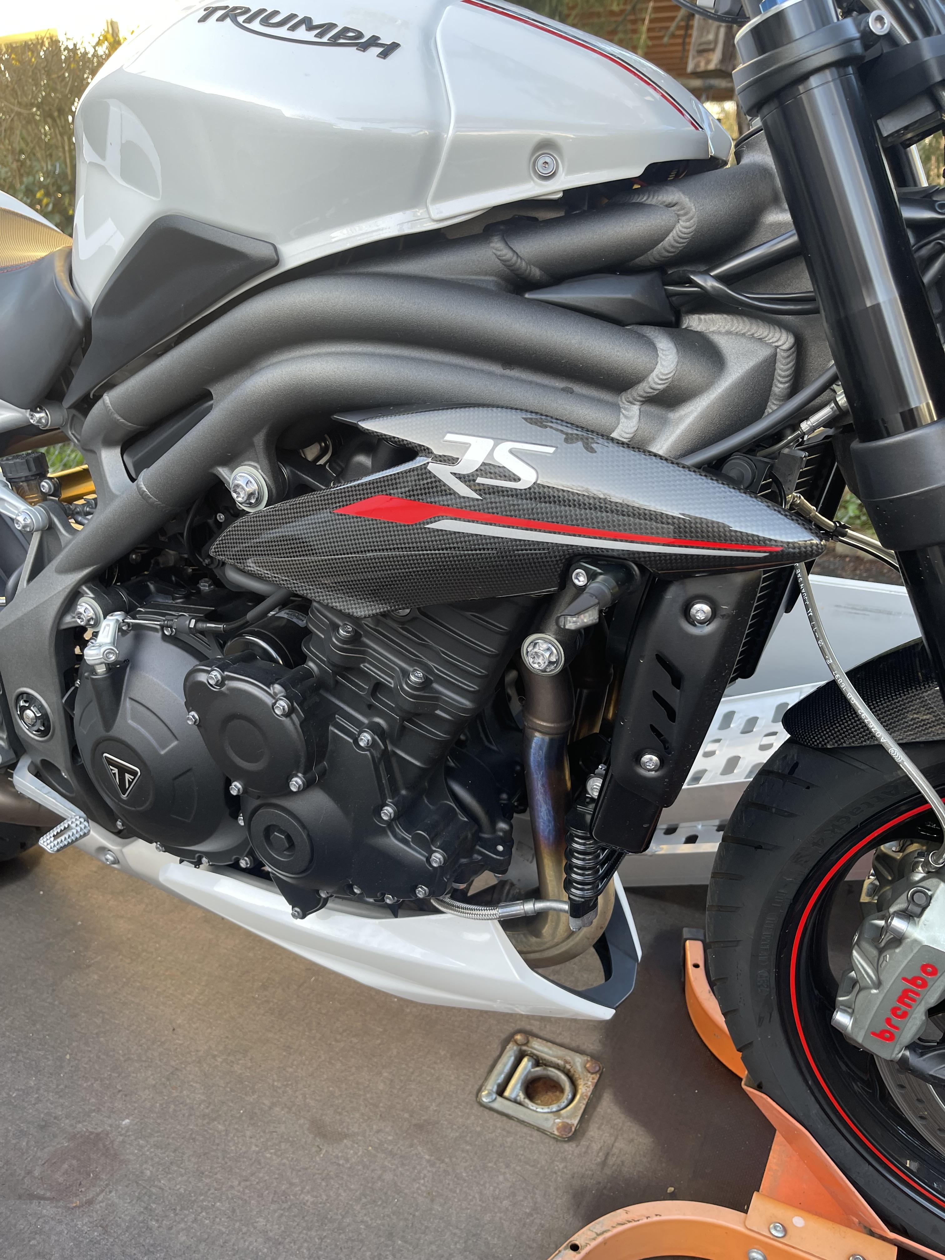 Moin zusammen! Auch ich möchte mich gerne bei euch vorstellen und zukünftig die Möglichkeit haben erfahrene Triumphanten um Rat bitten zu können Mein Name ist Eric, ich bin 35, aktuell wohnhaft in Lübeck und seit gestern stolzer Besitzer einer Speed Triple 1200 RS (PB20). Das Wetter ist nicht gerade eine Freude, aber ich könnte kaum freudiger oder aufgeregter sein. Vielleicht geht heute ja noch was ^^ Die Speedy ist tatsächlich erst mein zweites Motorrad. Der Plan war eigentlich immer Motorradführerschein, aber tatsächlich hat das für mich dann erst recht spät geklappt. Den Lappen habe ich seit 22, habe dann mit einer CB650 R von Honda angefangen und meist positive, aber auch negative Erfahrungen (Sturz) sammeln können. Der Wechsel dieses Jahr kam dann doch früher, als ich das selber erwartet habe. Mein örtlicher Händler hat Lunte gerochen und war dann einfach ein guter Verkäufer ... Im Schnitt schaffe ich in einer Saison irgendwas zwischen 5- und 6.000 km, fahre gerne mal zum ADAC für ein Motorradtraining und werde das mit der Speedy sicherlich auch machen, einfach um da ohne größeres Risiko mein neues Wohnzimmer auf ihrem Sitz zu finden. Kleinere Projekte am Motorrad sind geplant: FlyScreen ist auf dem Weg, Sozifußrasten sollen weg, Felgendekor, Schutzpads am Motor, kurzer Kennzeichenhalter (wahrscheinlich Evotech) und beim Auspuff bin ich noch am Überlegen. Der Standard ist eigentlich gar nicht sooo uncool, allerdings hätte ich schon Lust auf den Austin GPRS Mini, der aber ja nicht für Euro 5+ verfügbar ist. Mal schauen ... Ich freue mich auf den Austausch und auch auf die Möglichkeit aus euren großen Erfahrungsschätzen schöpfen zu können. In diesem Sinne.. fahrt vorsichtig und bleibt oben! Bis in Kürze in einem anderen Thread! Cheers