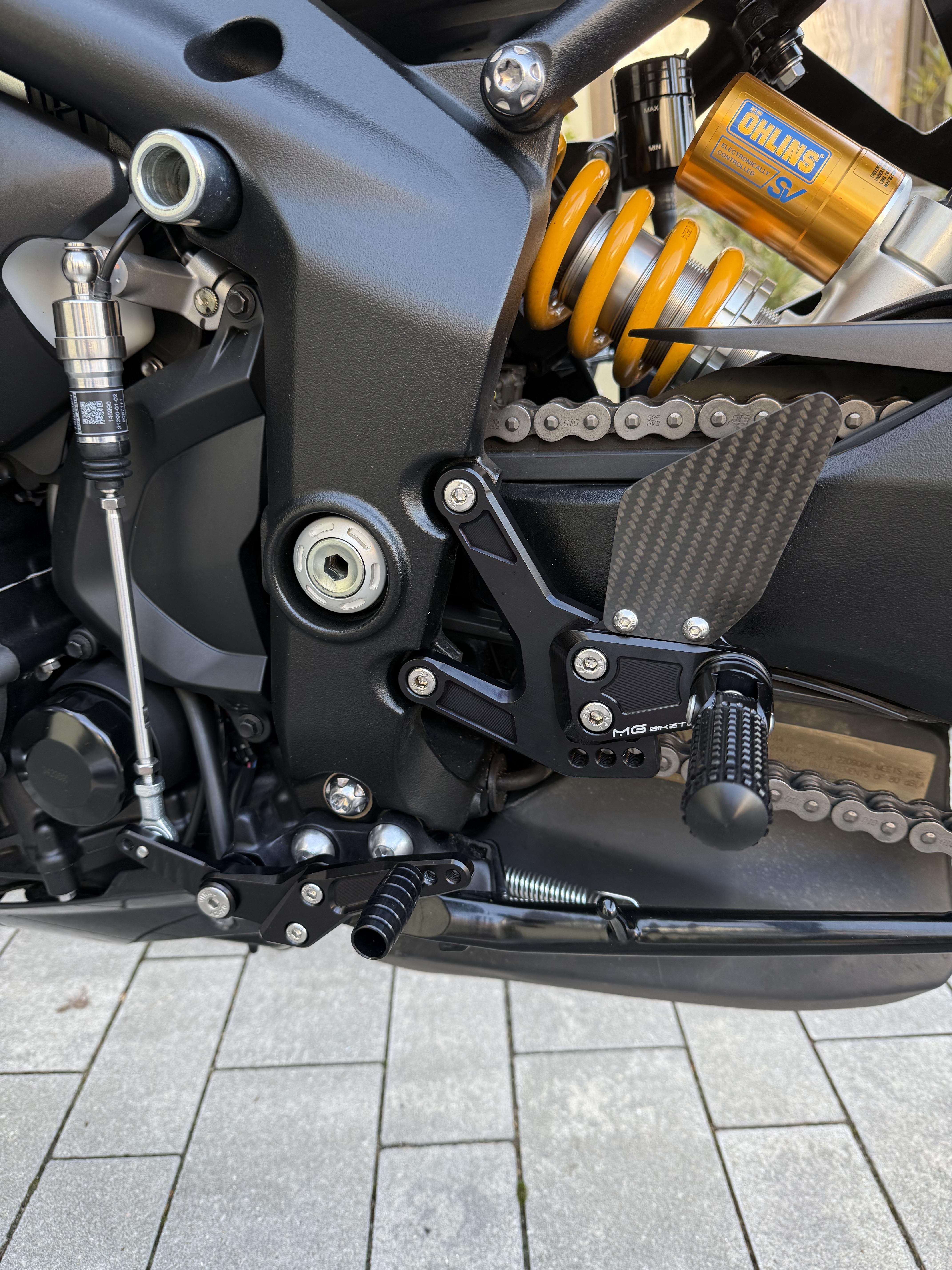 Hallo, ich habe mich für die MG BikeTec entschieden, und denke die kann sich sehen lassen. Einziges kleines Manko, wenn ich was zu meckern hätte, wäre dass die Höhenverstellung für Schalt und Bremshebel bei meiner Einstellung nahezu ausgereizt ist. Habe das Auge an der Schaltwelle auch verdreht, aber mehr geht leider nicht da das Auge sonst an der Abdeckung für den Ausgleichsbehälter anstößt. Habe aber Schlussendlich doch die für mich passende Einstellung gefunden. Verarbeitung, Optik und Preis/Leistung ist bei der Fußrastenanlage aus meiner Sicht völlig OK. Gruß Holger3 Punkte -