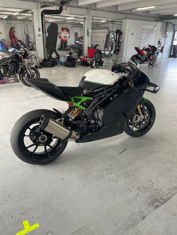 Es kam, wie es kommen musste.. Bedingt durch meinen Sturz in Oschersleben beim T-Cup 2021 und großem Aua in meiner eh schon lädieren Hüfte, hatte ich damals meine neu aufgebaute 765RS-Streety und nahezu alles was zum Moped gehörte verkauft.. Ich wollte nicht mehr… Zu dem Zeitpunkt war es der richtige Schritt… Das Moped aber selbst der Knaller, bin nur nicht viel damit gefahren, da der Sturz direkt am Anfang des zweiten Events stattgefunden hat. Sie war aber nahezu komplett ausgestattet.. Bild alt Streety 765 Trotzdem war mir mulmig sie abgegeben zu haben… Aber zu spät… Es folgte eine Hüft-Arthroskopie, die aber nichts gebracht hat.. Das ganze Prozedere ist mir immens auf mein Gemüt geschlagen, quasi bis zum jetzigen Jahr.. Netty fand es zwar gut, das ich die Rennerei aufgegeben habe, sagte aber immer mal.. Schauen wir mal wie lange.:!!! Ob sie Recht behalten sollte?! Wer weiss…. 😉 Dieses Jahr hatte ich die Nase voll, die Hüfte wurde immer blöder, Sport klappte auch nicht mehr so wie ich wollte… Schluss jetzt.. Neues Hüftgelenk ist seit 3 Monaten drin und es geht mir besser als je zuvor… Mehrfache Nachfrage beim Doc hinsichtlich Motorrad fahren.. Kein Problem.. Ich: Was ist mit Rennstrecke fahren? Doc: Kein Problem, macht die Hüfte mit.. Wenn du auf die Nase fällst, kann dies doof werden.. Muss aber nicht, je nachdem wie du fällst.. Aber das kann dir auch beim Mountainbiken oder auch Zuhause passieren… Und kurz nach der OP ist mir genau das Zuhause passiert.. Ich bin die Treppe runtergerutscht.. aber nix passiert, alles gut.. Ich wollte damit natürlich einerseits die Bestätigung für mich haben, andererseits auch um mir vielleicht doch noch das Türchen Rennstrecke offen zu halten… Wer weiss wofür das mal gut ist.. Netty hatte ich schon länger vorbereitet und gesagt, ich muss mal wieder schauen, es fehlt mir.. Sie ganz lapidar.. Wenn Du meinst? Bist Du dir sicher??? 😊 Letzten Monat bin ich mit der Streety zum Nürburgring gefahren und habe die Jungs vom T-Cup besucht.. War ok, aber brachte den Spirit nicht rüber…. Mehr gibt es dazu nicht zu sagen.. Vor zwei Wochen war ich bei IDM-Event am Schleizer Dreieck und habe Freunde im Twin Cup besucht. (siehe meinen Beitrag vom 23.07. im Thema „Der war schön heute…“).. Da kam der Spirit rüber, ich habe Spass ohne Ende gehabt, hab auf mehren Mopeds Platz genommen und hier gemerkt, ich habe den Racetrack vermisst… Das war einfach geil.. Bild IDM.. Und so kam es.. Ich musste auf die Rennstrecke.. Kurzer Check Zuhause mit Netty (mach wie meinst du… den Rest erspar ich euch..), Urlaub genommen, und für Donnerstag und Freitag dieser Woche bei Triple M Oschersleben gebucht. Die Strecke die ich am Meisten gefahren bin, aber auch wo ich zweimal gestürzt bin, den Ausgang kennt ihr… Sprich ich musste wenn genau hier wieder anfangen, den Sturzkombi anziehen, sowie auch die gleichen Handschuhe und Schuhe.. Helm habe ich natürlich damals direkt entsorgt… Dann meine nagelneue Streety RS (EZ März 23 mit gerade mal 1300 km) genommen, KZH abgebaut, Blinker abmontiert sowie die Scheinwerfer… Pirelli Supercorsa SP waren montiert, Bridgestone S22 habe ich noch mitgenommen.. Unterkunft gesucht, Box gemietet. Ich wollte es so bequem und einfach wie möglich haben.. Wettervorhersage war doof, ich würde nicht im Regen fahren.. Wegschmeissen der Streety war ebenfalls keine Option.. 🫣 Ich habe genau den gleichen Ablauf im Sinn gehabt wie Wolfi Z.. Anmeldung in der Bummelgruppe, keine Zeiten ansehen.. Nur schauen, was machen meine Gedanken, was macht die Hüfte, wie kann ich mich bewegen… Gesagt getan… Bilder RS Box Was war ich nervös… Alle Gedanken gingen mir durch den Kopf… Aber egal.. Nicht quatschen, machen.. Wenn doof, direkt wieder raus… 1. Turn: Einstellung des Fahrwerks auf Strasse nicht geändert, Pirelli‘s habe ich entsprechend im Luftdruck angepasst.. Ok, für‘s Einrollen war das Feeling gut… Und was konnte ich mich im Verhältnis zu vor zwei Jahren bewegen.. Irre… Kein Vergleich… 2. Turn: Ich wurde schneller, Reifen fing an zu walken, Fahrwerk an zu Pumpen… Direkt raus.. Ab zum Fahrwerksmann Sascha.. Fahrwerk anders eingestellt und vorher diese Drecks-Pirelli‘s runtergeschmissen und die S22 drauf gemacht.. Die Supercorsa und ich werden keine Freunde… Waren wir noch nie und werden wir jetzt erst Recht nicht.. Selbst Sascha sagte.. Schmeiss die Dinger runter, ich bin damit auch schon übel gestürzt… 3. Turn Regen, war aber eh nicht fertig… 4. Turn raus.. Genial, ganz anderes Gefühl, Stabilität, Moped machte das was ich wollte… Eine Gruppe höher, am Ende des Tages nochmal eine Gruppe höher, nun in der mittleren Gruppe… Es war aber am ersten Tag schwierig.. Wetter war seltsam, zwischendurch immer mal wieder Abbruch, rote Flagge etc… Bin also tatsächlich nur 3 1/4 Turns gefahren… Viel zu wenig… Die Gedanken in meinem Kopf musste ich sortieren und aushalten, ich wollte dies ganz bewusst machen.. Richtig reingehalten beim Überholen habe ich nur, wenn ich sicher war, sonst habe ich es sein gelassen… Mir ging es schlichtweg nur um das Gefühl und wie kann ich das einordnen, was macht die Hüfte. Am Ende des Tages habe ich gut und ruhig in der Ferienwohnung geschlafen.. Auch das war wichtig.. Der zweite Tag war Bombe.. Strahlender Sonnenschein, alle Turns fanden statt.. Bis zur Mittagspause bin ich noch 3 Turns mit der Streety gefahren, an den Rennen habe ich bewusst nicht teilgenommen.. Dann hatte die Streety Feierabend, ich war froh das alles glatt gelaufen ist, mehr konnte und wollte ich nicht erreichen.. Dann…. Ein guter Freund von mir (Uwe), mit dem ich im T-Cup gefahren bin, fährt im zweiten Jahr im Twin Cup mit einer MT07.. In Schleiz konnte ich mich davon überzeugen, wie gut das geht.. Ich wollte das Teil mal versuchen.. Gesagt getan.. er brachte sie mir nach Osche.. Er sagte aber auch.. Das fährt sich ganz anders.. Er hat lange gebraucht um 