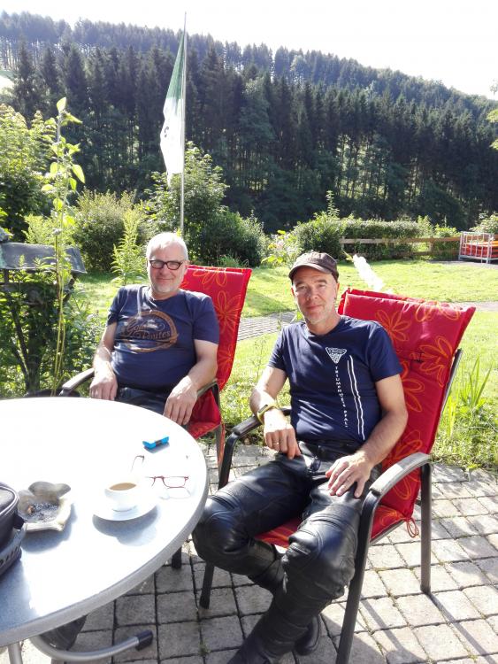 Eiserne Lausi Geschrieben 15. August 2016 report Geschrieben 15. August 2016 vor einer Stunde schrieb Da_Eiserne: Nach 500 + 330km gut zu Hause gelandet. Perfekte Organisation von Bianca, ein großes Danke dafür ! Genauso einen großen Dank an Knuffi fürs perfekte lotsen in die Pfalz und ihm und dem Schätzelein für die Unterkunft. Hat Spass gemacht alte Freunde zu treffen und neue kennen zu lernen. Mein Transvestiten Tiger hat sich über 2500km in den letzten 6 Tagen bewährt, bis auf eine kleine Panne mit der Benzinleitung und ein paar abvibrierten Schrauben hat er Hitze, Wasser , Buckelpisten (Danke Prof) und Dauerfeuer hat alles gepasst und es macht Freude damit zu fahren. War ein schönes Wochenende. Cheers Da Eiserne Wollte mich auch kurz zu Wort melden. Danke, dass ich dabei sein durfte und so herzlich aufgenommen wurde. War echt ein tolles Wochenende! hat echt Spaß gemacht mit euch! danke auch an die Schmiedies für Begleitung und Logie Zitieren