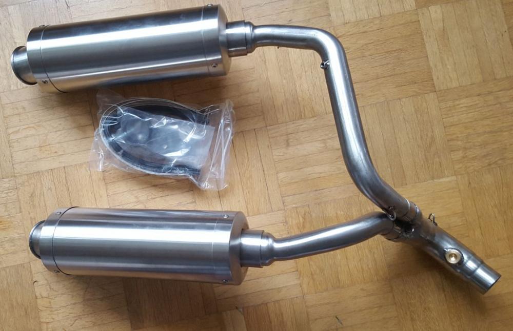 Andreas vwWe Geschrieben 30. Januar 2017 report Geschrieben 30. Januar 2017 (bearbeitet) Hallo zusammen, gestern habe ich mal meine Arrows demontiert und versucht den Neuerwerb anzuschrauben. Die Teile sind sauber verarbeitet, es passt alles präzise ineinander, nur die Laschen zur Montage der Endtöpfe am Rahmenheck sind etwas kurz und liegen ein bisschen weit innen. Ich behalte die Anlage aber auf jeden Fall, denn bei dem Preis kann man diese Kleinigkeiten durchaus selber in Ordnung bringen. In die Saison starte ich aber erst mal mit den Arrows und halte die Mivvs als Backup. Gruß Andreas Bearbeitet 30. Januar 2017 von Andreas vwWe Zitieren