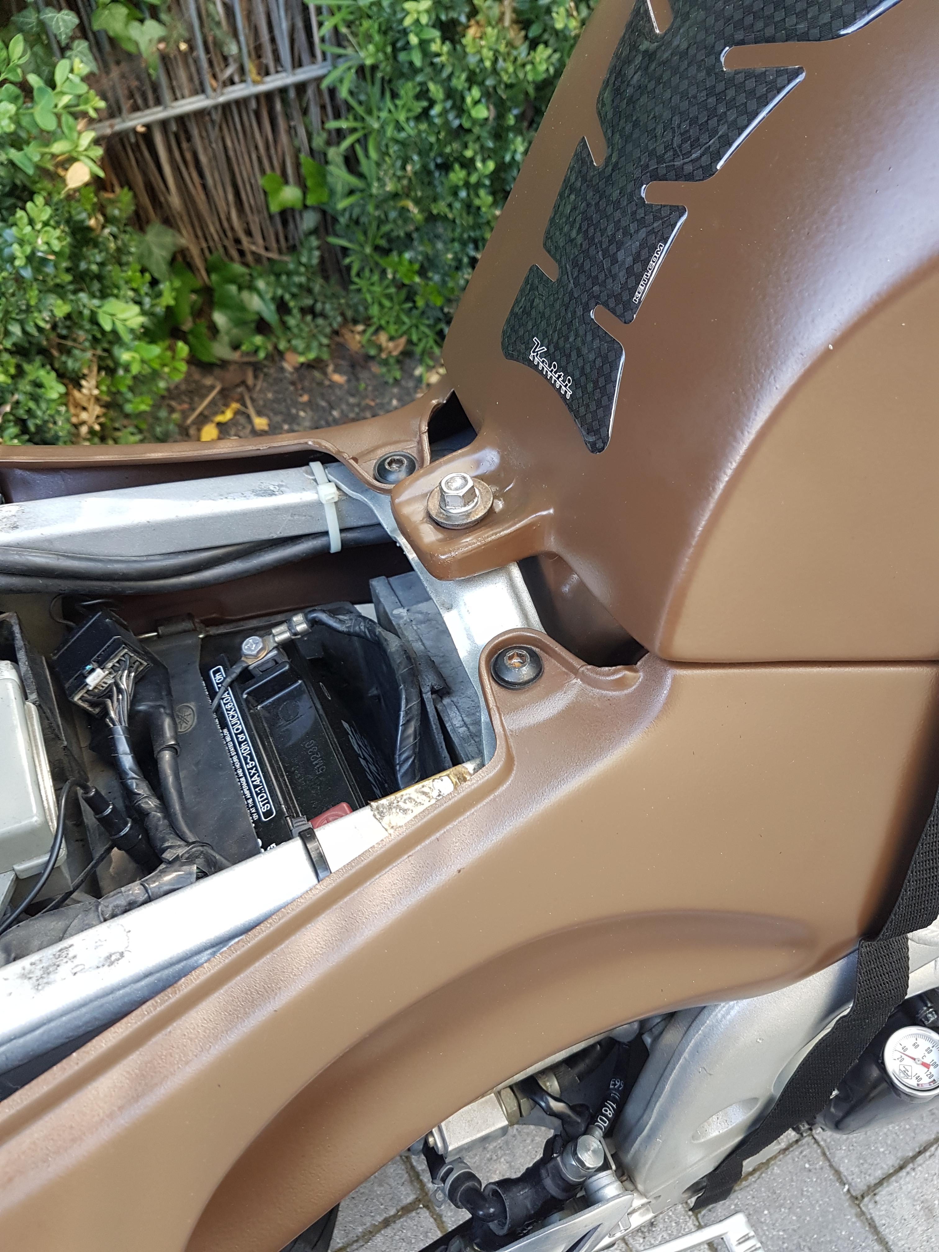 50955i Geschrieben 25. Mai 2017 report Geschrieben 25. Mai 2017 Hm könnte eventuell auf die vorderen beiden Verkleidungsschrauben passen, welche unter dem Sitz sind auf Höhe der Tankbefestigung hinten. Dafür muss der Sitz runter, sind aber nur 2 Schrauben unter der Heckabdeckung. Ist aber nur eine Vermutung...