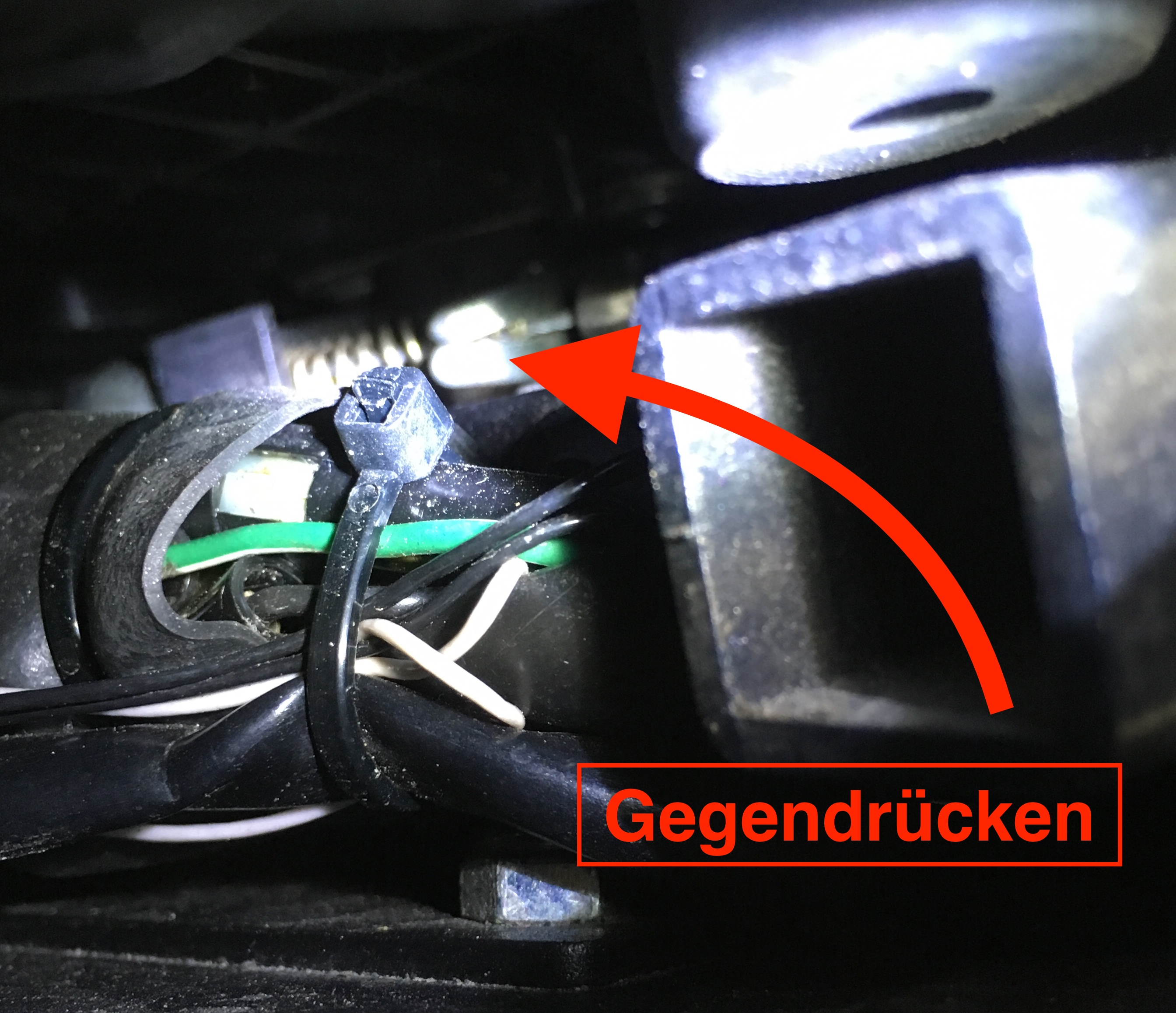JoE. Geschrieben 13. Juni 2017 report Geschrieben 13. Juni 2017 (bearbeitet) Wenn es sich um die NJ aus Deinem Profil handelt, dann lässt sich die Sitzbankverriegelung lmit einem längeren dünnen Schraubendreher, einem kräftigen Draht o.ä. offen. Mit etwas Geschick muss dazu nichts abgebaut werden. Wenn man etwas mehr Platz benötigt dann kann die hintere Plastikschraube der rechten Seitenverkleidung (von unten) herausgenommen werden. Dann lässt sich das hintere Ende der Verkleidung aus dem Gummistopfen ziehen und gibt genügend Platz dass man mit Taschenlampe hineinleuchten, und mit dem Schraubendreher o.ä. die Verriegelung öffnen kann. Eben gerade probeweise praktiziert. Das Foto wurde mit verriegelter Sitzbank aufgenommen. Ist nicht ganz scharf, aber ich denke man sieht worum es geht: Ach, und ja, es ist auch eine Sitzbankabdeckung montiert. Bearbeitet 13. Juni 2017 von JoE. Zusatz Zitieren