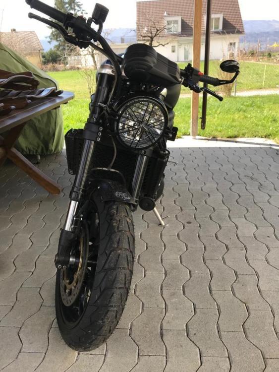 Schattinho Geschrieben 19. März 2019 Autor report Geschrieben 19. März 2019 (bearbeitet) Nach (zu) langer Zeit geht es hier mal weiter... Der Umbau meiner Speedy nimmt langsam Formen an, weshalb ich diesen Fortschritt mit Euch teilen möchte. Wie erwähnt handelt es sich bei diesem Projekt um eine etwas spezielle Interpretation einer Speed Triple, weshalb ich auch erwarte, dass die Reaktionen wohl nicht nur positiv ausfallen werden. Das ist mir aber einerlei, da das Motorrad ja primär mir gefallen sollte... Nach dem Scheinwerfer der Bonneville Black und dem Zard-Endtütchen waren nun die Reifen dran. Anhand der neuen Pellen dürften einige schon erraten haben, in welche Richtung sich dieses Motorrad künftig entwickeln wird. Richtig, aus meiner Speed Triple soll ein Scrambler (oder zumindest etwas in diese Richtung) werden. Passend zu den neuen Reifen wurde auch der vordere Fender durch ein schlankeres Exemplar getauscht... ...und auch der Scheinwerfer wurde noch etwas "verziert". Was jetzt noch ansteht, ist das Heck und die Sitzbank, welche raschmöglichst folgen sollen. Um das Heck optisch bereits etwas zu entlasten, wurde der Original-Kennzeichenträger entfernt und der Neue schon mal angepasst, so dass die Elektronik-Arbeiten vorgängig erledigt werden können. Sobald die noch fehlenden Teile eingetroffen sind, werde ich mich wieder melden und dies natürlich auch entsprechend dokumentieren. Gruss Roli Bearbeitet 19. März 2019 von Schattinho Zitieren