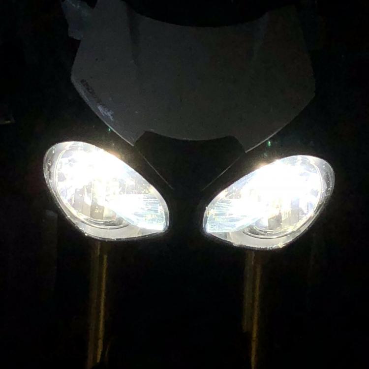 Vargo Geschrieben 12. August 2018 report Geschrieben 12. August 2018 (bearbeitet) Ich hab die hier verbaut. Sind natürlich nicht legal, aber seither werde ich definitiv besser gesehen von anderen Verkehrsteilnehmern und genau darum ging es mir dabei....und nichts anderes. Der Vorteil der LED Birnchen ist, dass diise in den Abmaßen exakt den normalen H4 mit Stecker entsprechen. denn sonst gibt's ein Platzproblem. ich hab aber noch von einem ersten Versuch ein paar richtig gute LED Birnen da liegen. Kannst für 50,-€ haben. die haben nur nicht ganz optimal in die Speedy Scheinwerfer gepasst. Allerdings bin ich damit auch noch nie nachts gefahren, kann dazu also nichts sagen. aber es stimmt schon, dass der Brennpunkt der Glühfäden herkömmlicher Birnen ein anderer ist als bei den LED's. Somit ist die Ausleuchtung auch anders. aber mir wurscht, ich fahr eh nur tagsüber bis max. Dämmerung. Die Gesetzeshüter haben mich allerdings auch noch nie aufgehalten bzw. bin noch nie mit meiner Speedy in eine Kontrolle gefahren. Sonst fahr ich halt mit dem mickrigen "Deko-Tagfahrlich" weiter. (was man übrigens wirklich kaum sieht, zumindest bei einem schwarzen Bike mit schwarzem Fahrer drauf) Aber zum letzten TÜV Termin hab ich die originalen Birnchen eingesetzt. sicher ist sicher.... Bearbeitet 12. August 2018 von Vargo Zitieren