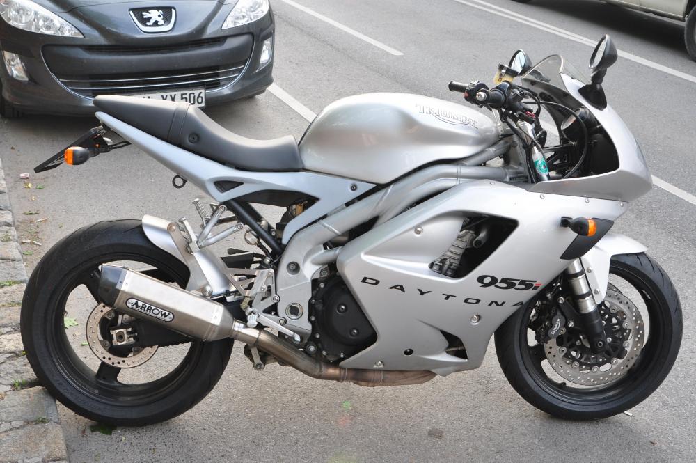 el capitan Geschrieben 20. Oktober 2018 report Geschrieben 20. Oktober 2018 (bearbeitet) Hallo Leute, im Frühjahr habe ich meine Streety R verkauft. Sie hatte das beste Fahrwerk und die geilsten Bremsen aller Motorräder, die ich je besessen habe. Leider ist der Motor derart linear, dass mir irgendwie der Spaß gefehlt hat. Sie wurde also durch eine West-Daytona 955i, Modell 2002 (ja, genau: das ungeliebte Baujahr mit DSSA) ersetzt. Vom Vorbesitzer war und ist immer noch ein Spiegler SBK-Kit drauf. Das war´s dann auch schon zum Kaufzeitpunkt. Nachdem mir das 595N Heck nie gefallen hat musste was Eleganteres hinten drauf. Ich kaprizierte mich auf jenes der Speed Triple 1050 und da die Baujahre mit dem kürzesten Arsch, 2005-2007. Heckrahmen und Innenkotflügel waren schnell gefunden, die Sitzbank dauerte. Und Seitenverkleidungen werden nahe dem Neupreis gehandelt, also habe ich mir Fiberglass-Nachbauten aus Italien bestellt. Klingt einfach, ist es auch - bis man versucht, die Batterie oder den Ausgleichsbehälter im superknappen Heck unterzubringen: geht nicht. Dort, wo beim 595N-Tank die Benzipumpe sitzt, lässt der 1050-Tank Platz für die Batterie. Was also tun? Einen guten Tank verkaufen? Oder doch einen etwas kreativeren Ansatz verfolgen? Zweite Variante: Nun startet eine 13,2V LiFePo4-Modellbaubatterie mit 4 Ah den Triple. Als Ausgleichsbehälter darf es eine Fahrradtrinkflasche sein, passenderweise gleich in Silbermetallic zu haben. Der Serienendtopf steht über das kurze Heck mittlerweile aber völlig obszön über, also beim Schweisser den Arrow Low Boy für Speedy ab 2012 passend machen lassen. Klingt gut, nicht zu laut aber doch vernehmbar. Zeit für eine Testfahrt - und die Rückkehr auf der Modellbatterie: ein ungenügend verschraubter Batteriekontakt hat die Sicherungsbox tw. geschmolzen. Das dauert jetzt etwas länger, weil die üblichen fliegenden Sicherungen für 30A keine ausreichenden Kabelquerschnitte bieten. Fündig werde ich erst in einem kleinen Geschäft, X-mas electrics. Angesichts der Produktbeschreibung "Für Flugzeugträger, Baumaschinen über 40 Tonnen und zur Reglerabsicherung für Triumph" bin ich nicht der Erste. Nach ein wenig Löten und dem Kauf einer Crimpzange findet die Daytona-Lima auch wieder Abnehmer. Das öde Silber geht aber gar nicht. Dafür bietet es eine naheliegende Basis für Candy-Lacke. Welche Farbe? British Racing Green? "Sei nicht so feig - mach mal was Anderes" - gesagt, getan. Ich entscheide mich für Candy Blood Red und drücke meinem Lackierer das Konzentrat in die Hand. Kurzfristig disponiere ich noch um, nachdem ich ursprünglich nur die Kanzel der Verkleidung in Rot haben wollte. Außerdem soll der Unterteil die Motorfarbe fortsetzen. Jetzt beginnt das Warten. Mein Lackierer ruft an, ich kann mir die Teile holen. Oida! Wie muss das erst am Bike aussehen??? Die 600 Euro ist die Lackierung jedenfalls sicher wert und ich schraube noch am selben Tag alles wieder aufs Bike. Als kleines I-Tüpfelchen kann ich die Seriensitzbank mit lächerlichem Aufpreis tauschen - nur auf sie passt nämlich die Soziussitzabdeckung. Den Härtetest von 700 km am selben Tag haben wir beide vor einer Woche bestanden. Bearbeitet 20. Oktober 2018 von el capitan Ergänzung Zitieren
