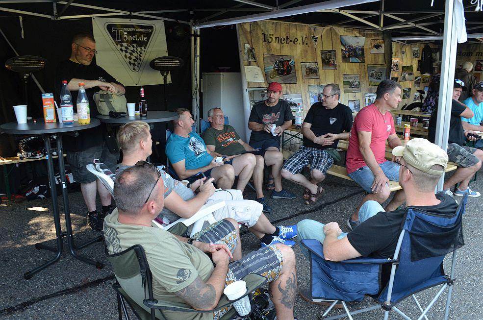 Frau Starfighter Geschrieben 3. September 2019 Autor report Geschrieben 3. September 2019 Glemseck101 war wieder schön. Tolle umgebaute aber auch veranzte Bikes, laute Motoren, tolles Wetter, viele tolle Gespräche. Mit unserem Standplatz hatten wir sogar das Glück, nicht zu sehr von der Sonne verwöhnt zu werden und waren froh ein schattiges Plätzchen zu haben. Wir wären nur gerne abends in einer etwas größeren Runde gewesen. So hätte man auch mal bei den anderen schauen können oder was von der Lifemusik auf der großen Bühne mitbekommen. Zu viert ist man am Stand gebunden. Tagsüber waren ohne uns mindestens 25 T5netler vor Ort. Manche nur kurz, aber ihr wart da. Mit pepe+, Buddy, Atlan, claenn, schmidei, schmidin, T3mp0.Plu5 und starfighter1967 hat der Auf-und Abbau super geklappt. Auch der Kuchen ist leer geworden. Allein an Spenden für das Forum kamen zum aktuellen Stand 308€ zusammen. Genaues kann ich erst nach der Jubiläumsfeier sagen. Und davon müssen natürlich noch die Unkosten abgezogen werden. Die Starfighter´s hoffen nächstes Jahr wieder mit dem T5net-Stand dabei sein zu können. Ausstellungsstücke dafür haben wir schon :-). Hier noch ein paar Bilder... Zitieren
