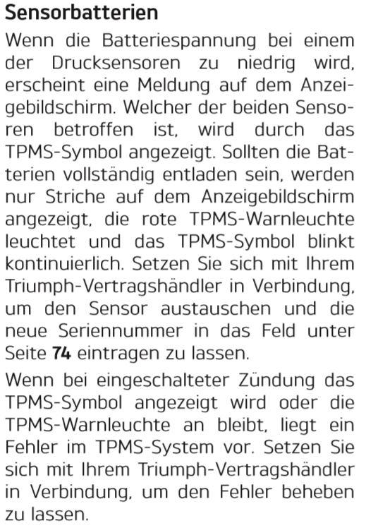 Tins Geschrieben 30. Juli 2019 report Geschrieben 30. Juli 2019 Hallo zusammen, ich habe eine Frage, wie kann ich erfahren ob bei meiner Speed Triple Reifendruck Sensoren verbaut sind ohne die Gummis runter zu machen und in die Felge zu schauen? Im Display ging letzte Woche eine Lampe an mit dem Hinweis im Handbuch nachzusehen. Da ist aber logischerweise kein Vermerk ob welche verbaut wurden. Nachdem ich einmal aus und wieder eingeschaltet habe, war die Meldung weg. Wenn man die Teile verbaut hat, könnte man dann im Menü irgendwo den Druck ablesen? Gruß Tins Zitieren