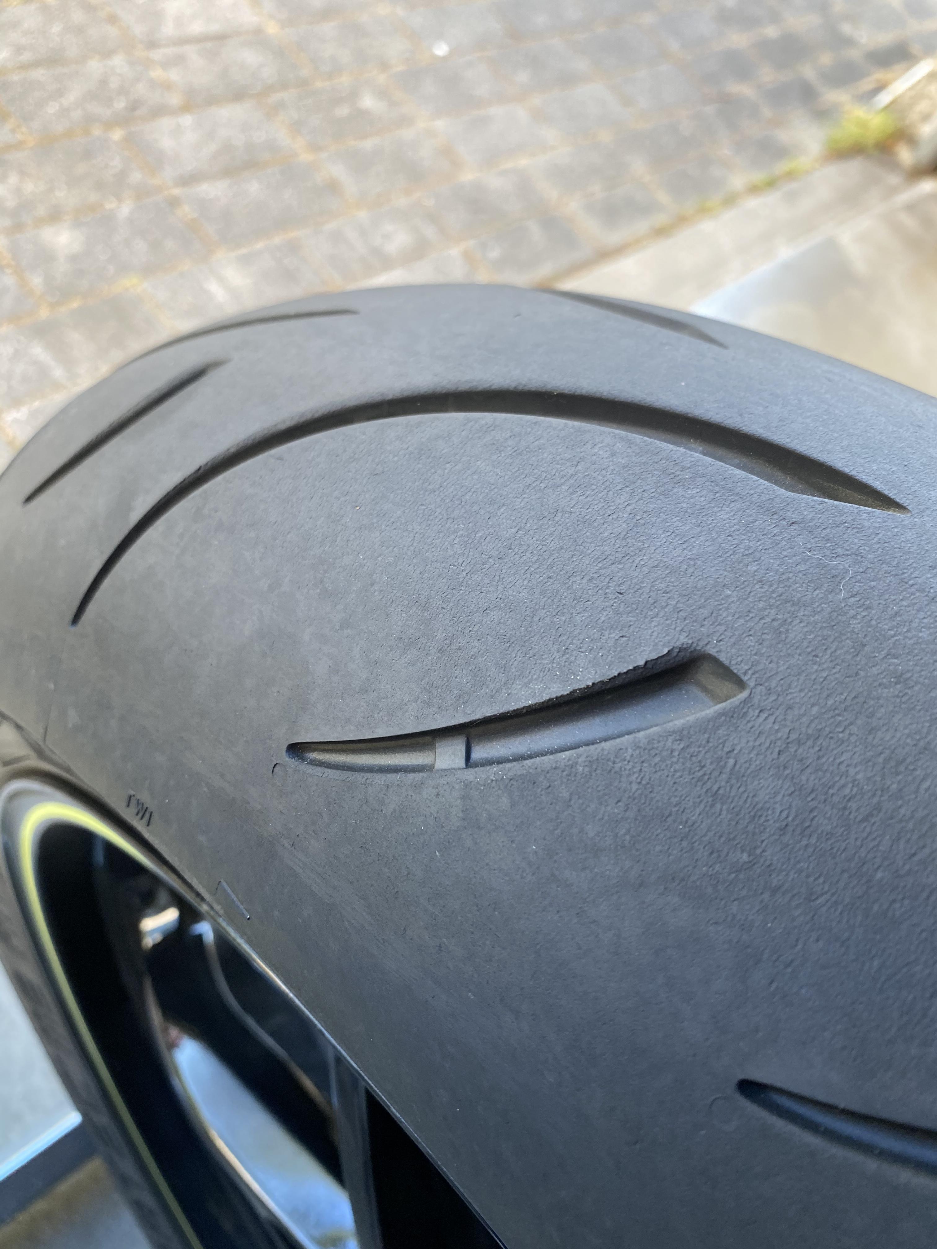 DocSchnaggl Geschrieben 7. Juni 2020 Autor report Geschrieben 7. Juni 2020 (bearbeitet) So da leider die Tour ins Wasser gefallen ist, kommt hier ein Zwischenbericht vom M9RR. am Anfang habe ich extrem Probleme gehabt den Reifen auf Temperatur zu bekommen. Da durch resultierend ein paar angekĂŒndigte Rutscher ĂŒber beide Reifen. mittlerweile Luftdruck auf 2,3v 2,6h, Fahrwerk nicht mehr so straff eingestellt. Zwischen Sport und StraĂe. Passt zum Reifen sehr gut bei meinen knapp 85KG incl Kleidung. Heute ne kleine gemĂŒtliche Runde auf dem NĂŒrburgring GP gedreht. Nur einmal 15min aber hat sich gut angefĂŒhlt ohne das der Reifen rutschen wollte oder Ăhnliches.  ZusĂ€tzlich ein paar Bilder nach knapp ĂŒber 2tkm. Sollte ne gute Laufleistung drin sein mit dem Reifen, noch einiges an Profil drauf. Denke die 4-5tkm sollten echt drin sein.    Bearbeitet 7. Juni 2020 von DocSchnaggl Zitieren