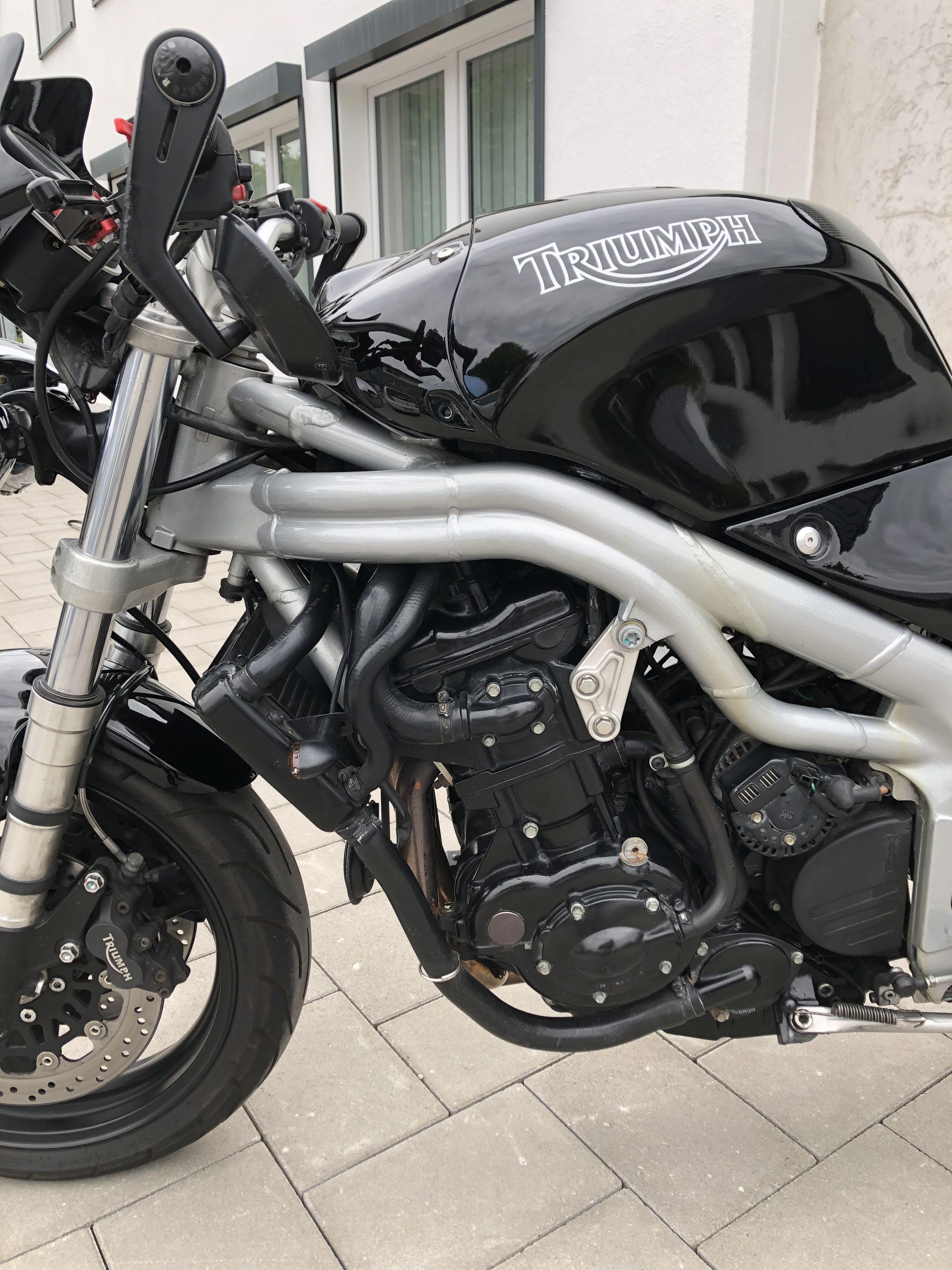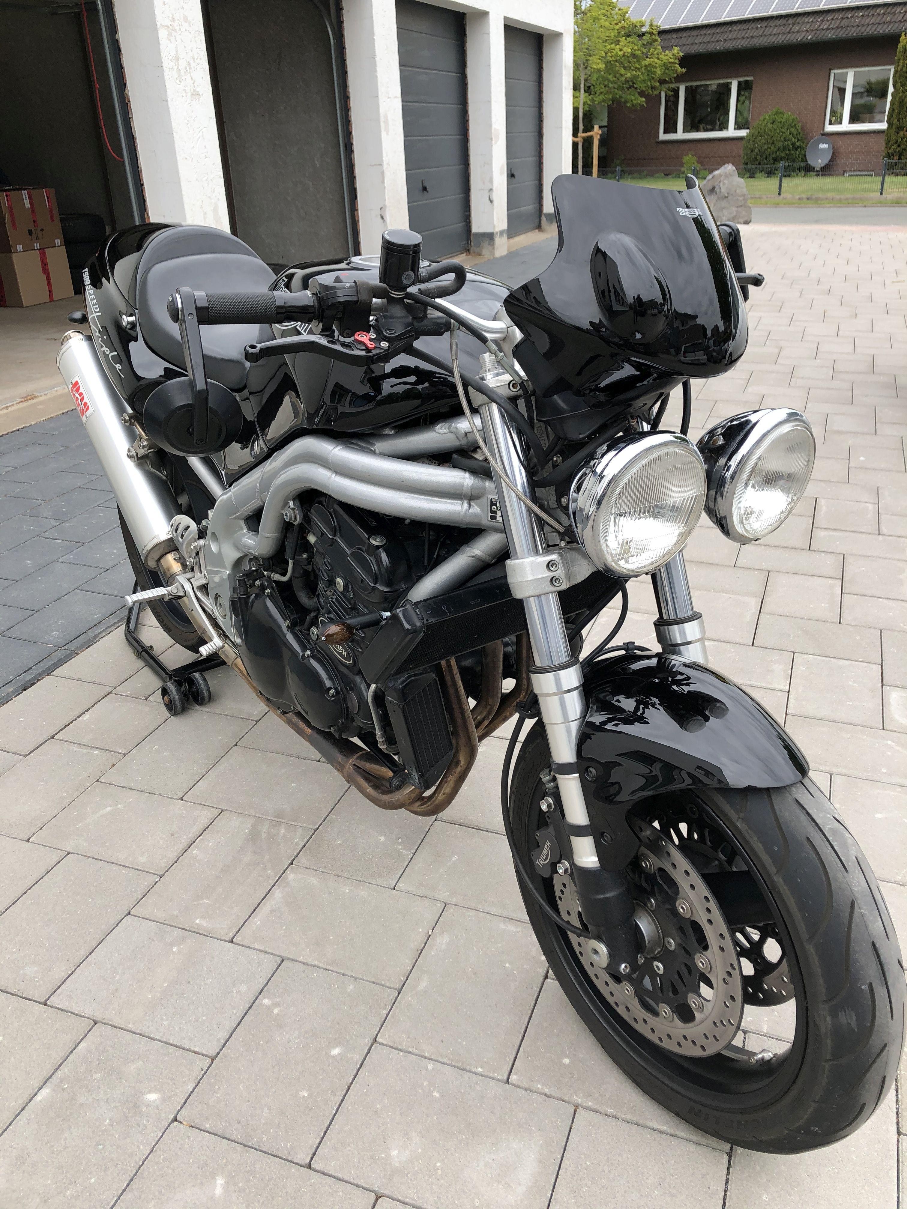 BritBike Geschrieben 18. Mai 2020 report Geschrieben 18. Mai 2020 Ahoi, ich möchte mich hier bei Euch kurz (erneut) vorstellen. Ich bin der Sigi, mittlerweile 50 Jahre jung und seit letzter Woche wieder Triple-Treiber. Ich habe mit 24 den Motorradführerschein gemacht und bis vor neun Jahren war ich leidenschaftlicher Biker. Ziemlich früh habe ich erkannt, dass das Leben zu kurz für Motorräder aus Japan ist. So folgen nach der nur sechs Monate gefahrenen Kawasaki GPZ 500S direkt eine folgende Motorrad-Persönlichkeiten: Ducati Monster M600 Triumph Speed Triple 955i MK1 (parallel Kawa Z Eliminator) Buell XB12R Firebold Buell XB12S Lightning Buell CR1125 Cafe Racer (parallel Triumph T300 Speed Triple) Ihr seht, der Triple hat mich immer wieder mal angemacht. Vor neun Jahren hat mich dann eine offensichtlich blinde Hausfrau übersehen. Ich saß auf einem Vorführer von HD weil die Buell zur ERSTEN Inspektion war ..... Der Unfall was so heftig das ich danach die Motorräder verkauft habe ...... Seither pflege und liebe ich zwei Exponate aus Zuffenhausen In der Corona Pandemie wurde mir nach intensiver Pflege und Investition in die Autos und nachvollgender Beschäftigung an Haus und Garten irgendwann vor ca. zwei Wochen langweilig .... und ich erwischte mich dabei das ich immer wieder bei ebay Kleinanzeigen nach Moppeten ausschau hielt. Mein Budget war aufgrund der o.g. Investitionen ziemlich begrenzt. Buell und Monster vielen aus dem Raster, aber T509er waren ein paar für sehr schmales Geld verfügbar. Also habe ich mich einem Tag mit meinem (fast erwachsenen) Junior in den Firmenwagen gesetzt und hab mal gute 800km abgerissen. Heraus kamen eine 509 mit sattem Investitionsstau, eine technisch hervorragende aber nicht schön umgebaute und eine Speedy mit extrem wenig km, einigen schönen dezenten Extras aber in einem erbärmlichen Zustand. Die ist es dann auch geworden. Die erste Fahrt war ziemlich ernüchternd .... Der Tageskilometerzähler liess sich nicht resetten ..... wie ging das überhaupt noch. Kurven waren irgendwie gruselig ..... kein Gefühl am Vorderrad ..... hatte ich das verlernt ??? Zudem soff die Karre immer ab .... das hatte der Verkäufer schon erwähnt das manchmal das Bike während der Fahrt einfach fast abstirbt ..... Wieder daheim erstmal das Handbuch gegriffen .... aha ! der Knopp für den TagesKM fehlt. Direkt am nächsten Tag bei Triumph bestellt. Handbuch Gabeleinstellung Werkseinstellung gecheckt. Vorspannung 5 passt, Druckstufe 1 .... auf 6 gedreht, Zugstufe 1 ..... auf 4 gedreht. Geputzt geputzt geputzt und festgestellt dass das Gasgriffgummi auf dem Schaft rutscht, also runter damit, sauber machen und fixieren. Gestern die zweite Ausfahrt ...... nichts "säuft mehr ab", das Bike liegt wie das sprichwörtliche Brett ...... ich bin mega glücklich. Hier seht ihr nun das Ergebnis nach ca. 7 Stunden putzen ...... einer Dose Never Dull, viel Bremsenreiniger, einer halben Pulle "Blaues Wunder" und viel hochwertiger Politur. Freue mich wieder dabei zu sein. Gruss Sigi Zitieren