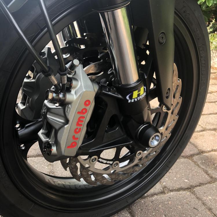 ketchup#13 Geschrieben 23. April 2022 report Geschrieben 23. April 2022 Moin !! Ein Kumpel testet gerade Bleche mit 1,5mm Dicke die zusätzlich hinter die Beläge kommen .... ich werde berichten ..... Das ist ja fast das selbe wie längere Kolben. Er sagt mit neuen Belägen ist alles gut. Mit zunehmendem Verschleiß wirds schlechter .... Daytona 675 R , also die gleichen Zangen Grüßle !! Zitieren