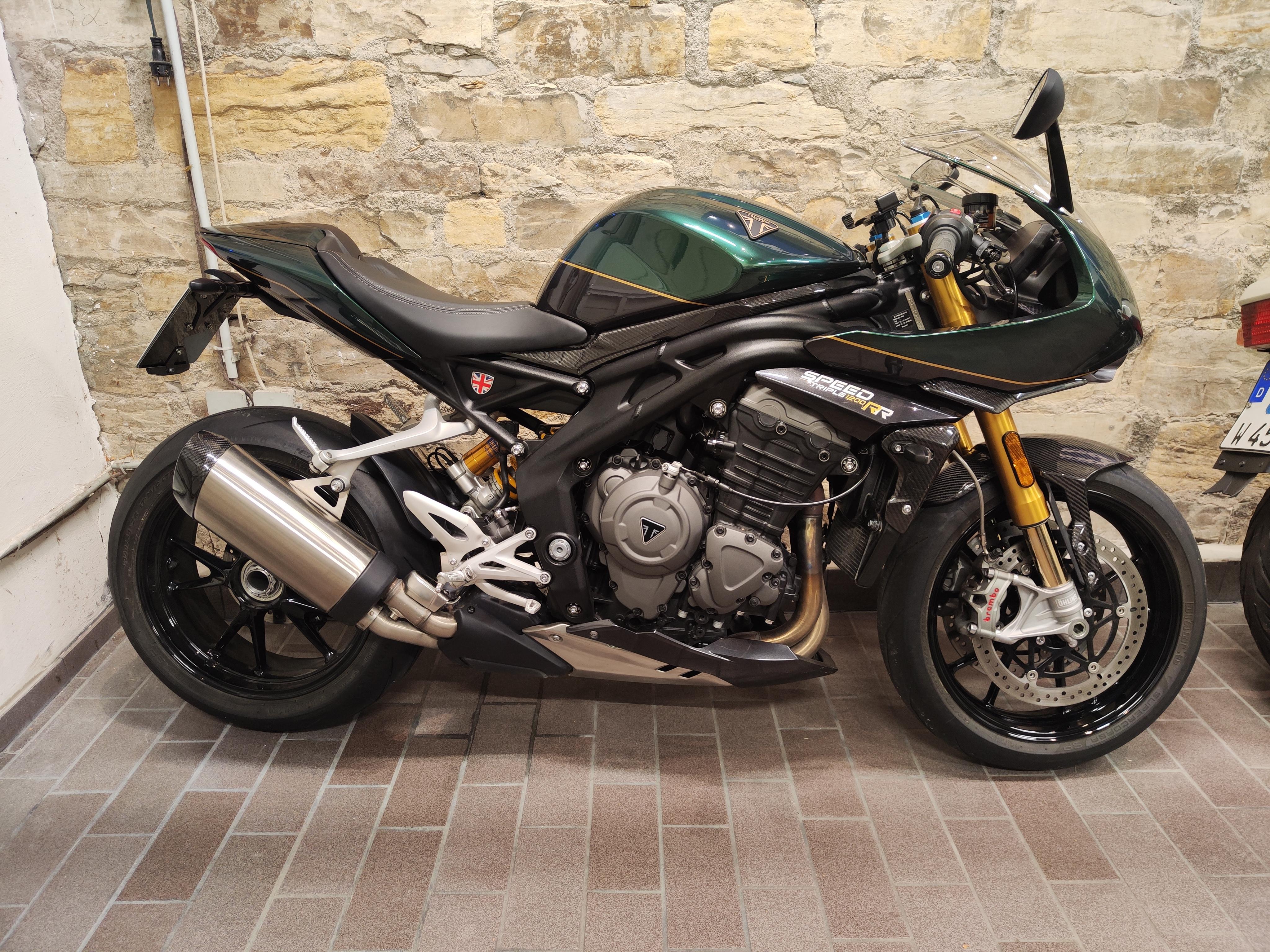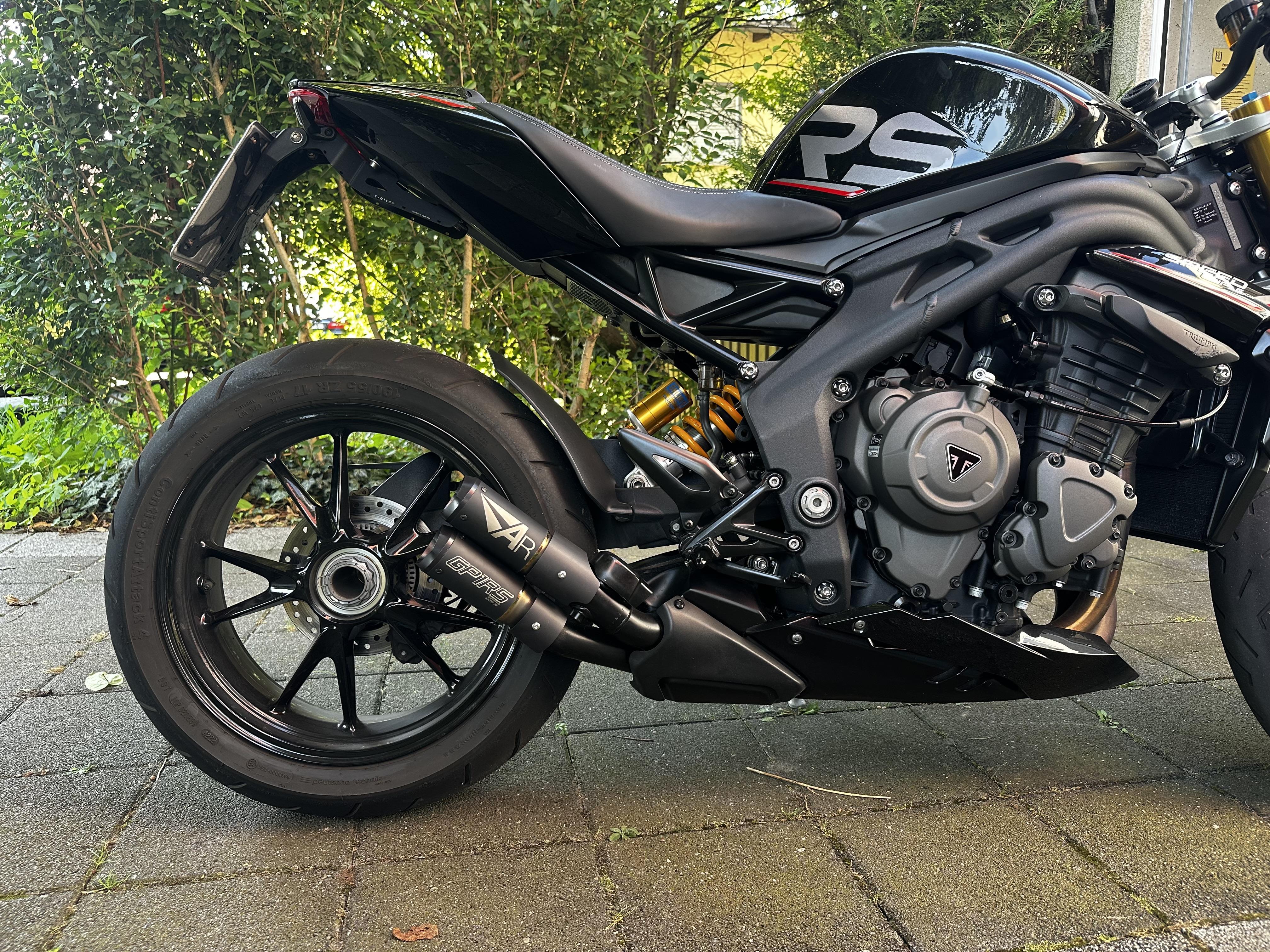 RS-Rider Geschrieben 9. März report Geschrieben 9. März (bearbeitet) Hallo, bin erst gestern Abend aus dem Urlaub zurück und da das Bike dank Saison-Kennzeichen erst wieder seit diesem Monat bewegt werden darf hab ich heute Vormittag noch eine Formation Lap mit Serien Auspuff gemacht, für den direkten Vergleich und erst danach umgerüstet. Ist deutlich lauter, im Leerlauf dumpfer. Die Klangcharakteristik wie brabbeln und sprotzeln ist verstärkt, besonders beim Gas wegnehmen aus höherer Drehzahl. Hört sich schon ziemlich sportlich an und von der Lautstäke her fragwürdig legal. Ich fand den Klang der Serien-Dämpfers gut, sonor aber unaufdringlich. Jetzt ist das Fahrgeräusch aufdringlich, bei längeren Touren nicht jedermanns Sache, muss man halt mögen. Die Gewichtsersparnis zum Serien-Dämpfer inkl. Evotech Auspuffhalter sind ca. 2,6 kg. Die Sozius-Fußrasten hatte ich schon vorher demontiert. Den Preis kannst du mit Versand auf der Website sehen, sind aber britische Pfund und PayPal berechnet den Tageskurs. Dann kommt noch der Zoll dazu. https://www.austinracing.com/home/271-2021-2022-1200-speed-triple-db-compliant-slip-on-exhaust-system.html#/1619-tip_colour_option_-black/1626-logo_option_-laser_etched_logo/1722-dbcompliant-yes_db_compliant/1828-fitment_option_-gp1rs_mini_pair/1628-silencer_finish_option_-titanium Der Klappeneliminator ist von Healtech (ESE-T03), den bekommst du überall im Netz. Der wird in den Stecker des Stellmotors eingesteckt und gaukelt dem Steuergerät eine funktionierend Klappe vor. Die Auspuffklappe bleibt aber in der Stellung, in die du sie drehst, in Serie ist sie ca. 1/3 geschlossen. MfG Bearbeitet 9. März von RS-Rider .. Zitieren