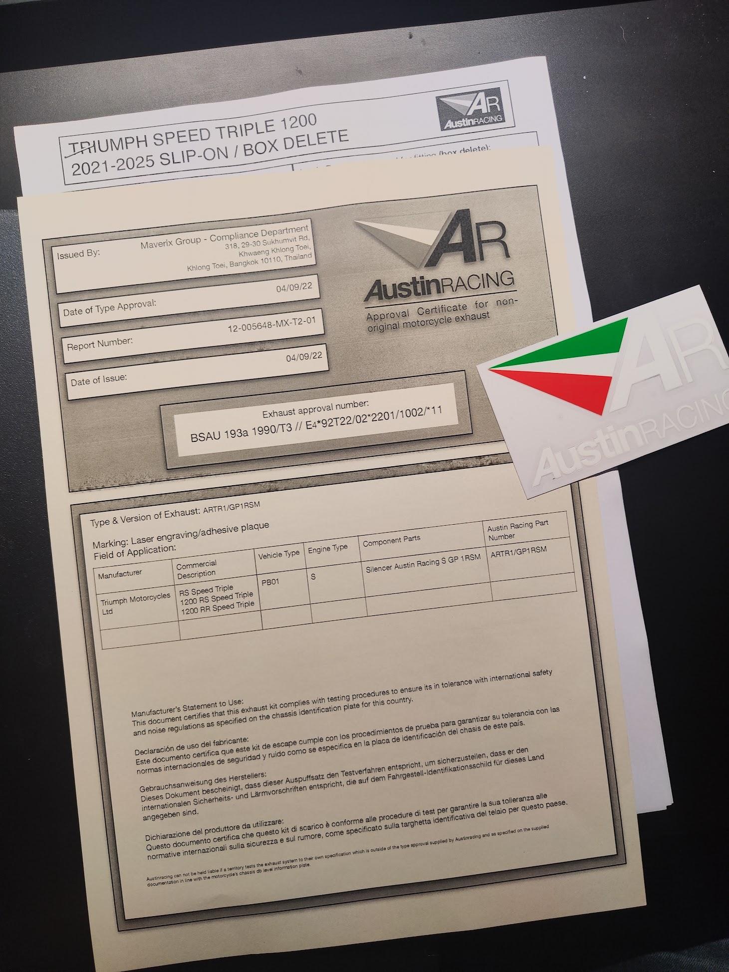 Youngtimer Geschrieben 26. November report Geschrieben 26. November Falls das Thema noch für jemanden interessant ist, diese Woche gibt es direkt bei Austin Racing 15% Rabatt auf Slip-ons. Da hab ich mal zugeschlagen. https://www.austinracing.com/home/271-2021-2022-1200-speed-triple-db-compliant-slip-on-exhaust-system.html#/1619-tip_colour_option_-black/1626-logo_option_-laser_etched_logo/1628-silencer_finish_option_-titanium/1722-dbcompliant-yes_db_compliant/1828-fitment_option_-gp1rs_mini_pair/1952-tip_choices-2021_2024 Zitat Black Friday is live at Austin Racing For one week only, we’re giving you our biggest savings of the year across slip-ons, decat systems and full systems — no gimmicks, just proper deals on the parts you actually want. Use: • BF25SO — Slip-Ons • BF25DC — Decat Systems • BF25FS — Full Systems Zitieren