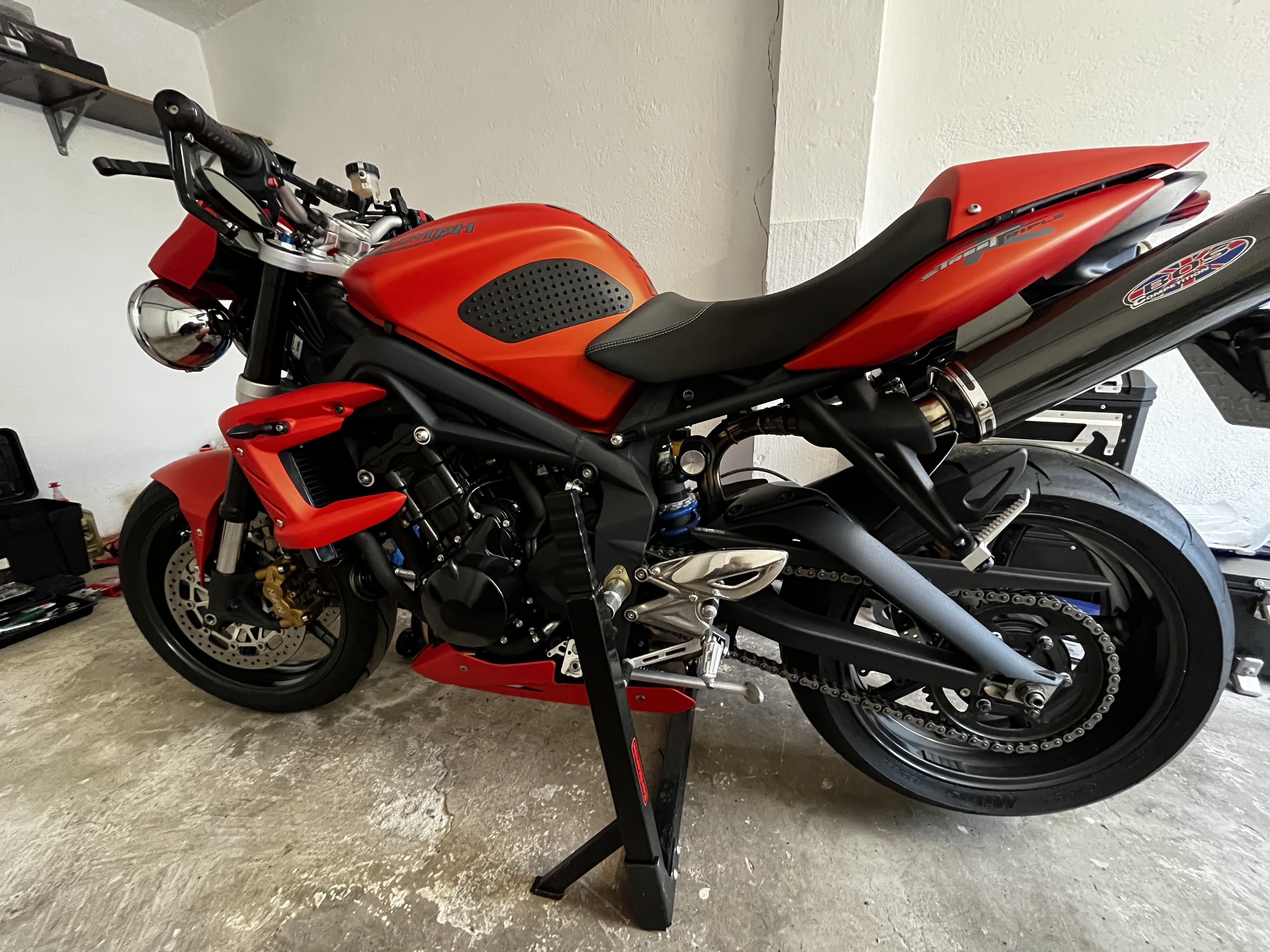 Triplemania Geschrieben 23. Mai 2023 report Geschrieben 23. Mai 2023 Ich schließe mich Milli aus eigener Erfahrung an: Die 675 R aus der ersten Serie ist ein zuverlässiges Motorrad, dass jede Menge Spaß macht. "Goldenes Kettenglied" hat unsere (MJ 2009, 21 tkm) auch noch. Das Moped läuft anstandslos. Die Steuerkette macht beim Kaltstart (ungewöhnlich) laute Geräusche, die müssen nach kurzer Zeit "verschwinden" (deutlich leiser werden). Der Steuerkettenspanner arbeitet bei der ersten Serie noch mechanisch. Falls ein Austausch von Spanner und/oder Kette erforderlich wird, ist das aber (handwerklich und finanziell) kein Hexenwerk. Für das Modelljahr 2009 gab es nur zwei Rückrufe. Vielleicht kann der Verkäufer etwas dazu sagen, ob die gemacht wurden: 1) Gleichrichter (wurde von T beim Rückruf gegen einen "Mosfet"-Regler ausgetauscht ) 2) Schaltwelle (vereinzelt "hakte" die Schaltung, mit der neuen Welle dann nicht mehr) Die Farbe "blazing orange" ist eher selten, in natura der Hammer. BOS-Auspufftöpfe sind auch nett, aber an diesem Moped kein Muss. Zitieren