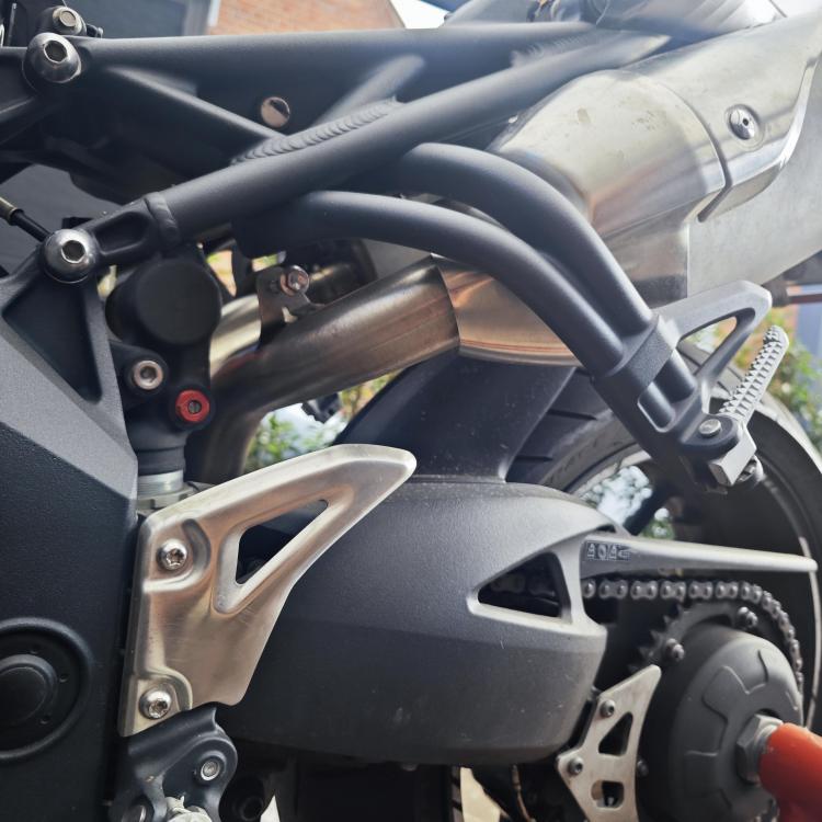 Kommt meines Wissens an die Verschraubpunkte der Soziusfußraste.
