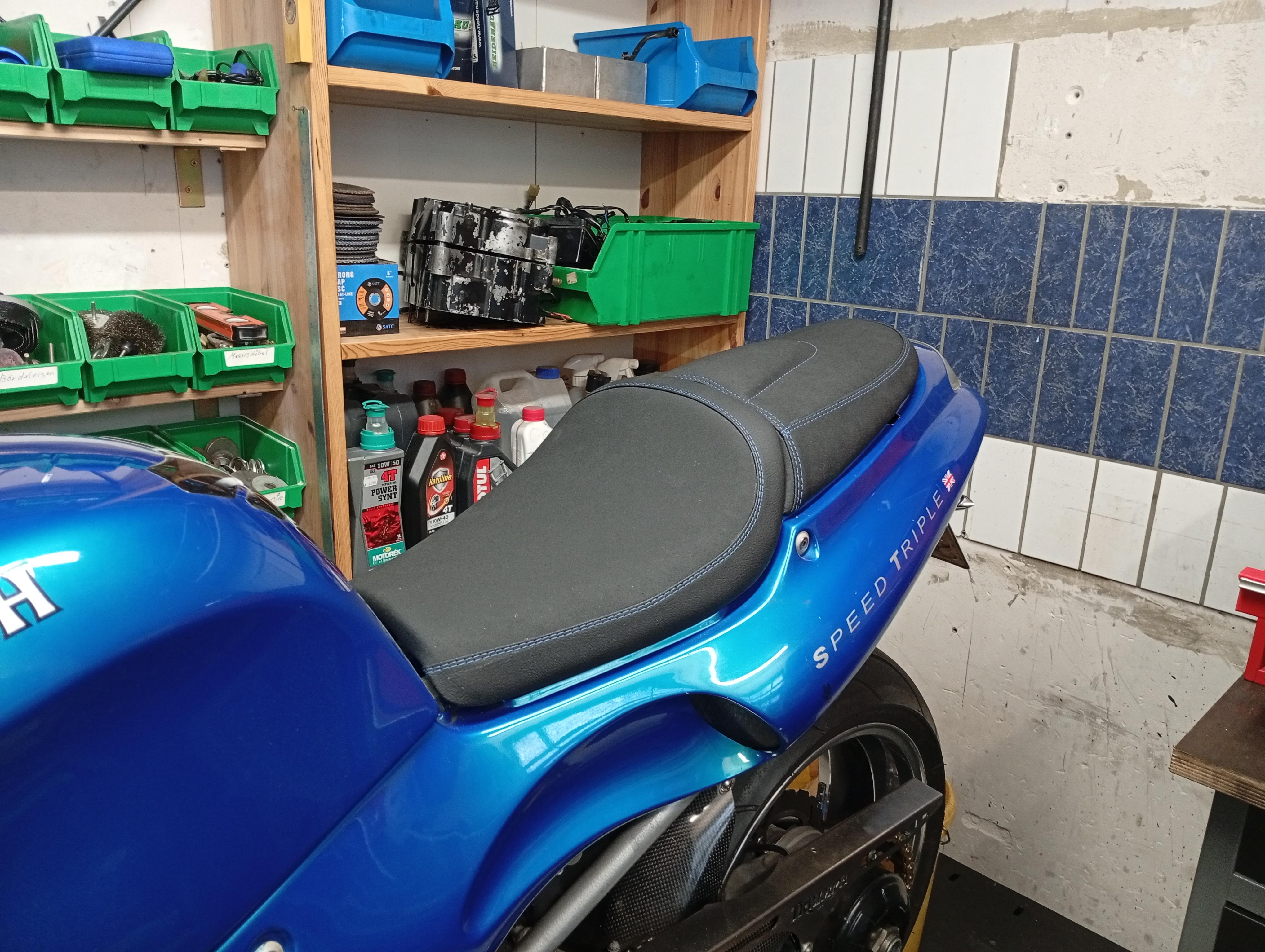 BikeausLU Geschrieben 28. November 2025 Autor report Geschrieben 28. November 2025 Übrigens.... Ich habe letztens meine Sozius Abdeckung während der Fahrt verloren!! Sie war nicht richtig eingerastet und hatte es nicht bemerkt. Zum Glück wurde dabei kein anderer Verkehrsteilnehmer getroffen! Leider blieb sie aber ausgerechnet auf nem Stück Autobahn liegen, Mittelleitplanke. Keine Chance.... Bin dann extra nochmal nachts um 1h hin gefahren....da war es weg.... wahrscheinlich von der Polizei oder Autobahnmeisterei eingesammelt... Sah aber sowieso komplett Ramponiert aus...was nun... Die große Tasche wollt Ich jetzt auch nicht immer fahren.. Bei meinen Überlegungen und Recherchen,viel mir eines auf... eigentlich macht diese Abdeckung, doch einen ganz schön klobigen Buckel. Rein von der Form her, macht der normale soziussitz ein viel schlankeres, sportlicheres Heck von der Seite gesehen. Und das Soziuskissen hab ich ja noch...und da ich sowieso mein Sitz hab neu beziehen lassen, hab ich kurzum das Teil nun auch zum Sattler. Kleine Vorgabe war, das Mittelteil etwas zu erhöhen, daß es doch eine kleine sportlichere Form erhält, aber eben nicht so ein Bauch wie Abdeckung... Bin gespannt, hole heute denn Sitz ab ... Morgen geht es zum Moped. Michel Ketzer reagierte darauf 1 Zitieren