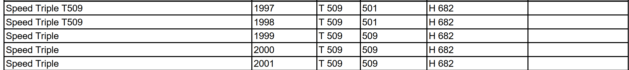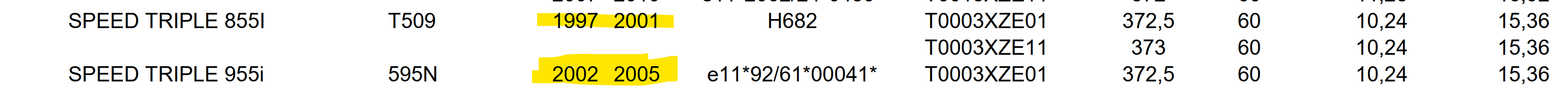 kobayaschi Geschrieben 3. Januar report Geschrieben 3. Januar vor 36 Minuten schrieb 47mado: Und eventuell ist das die Antwort für das Verwirrspiel: Die ABE/EG bezieht sich eben auf H682. Was für Bitubo wohl kein Unterschied ist, obwohl das eine eine 885i ist und die andere eine 955i. Die ABE bezieht sich wohl auf die Baujahre von 1997 - 2001. Typenliste ab 2014.pdf 176.82 kB · 1 Download Triumph-Typenliste bis 2016.pdf 123.26 kB · 1 Download Bestätigung Baugleichheit T509 und 595RPT.pdf 52.08 kB · 3 Downloads Okay, das hört sich plausibel an. Vielen Dank für die Infos! Zitieren