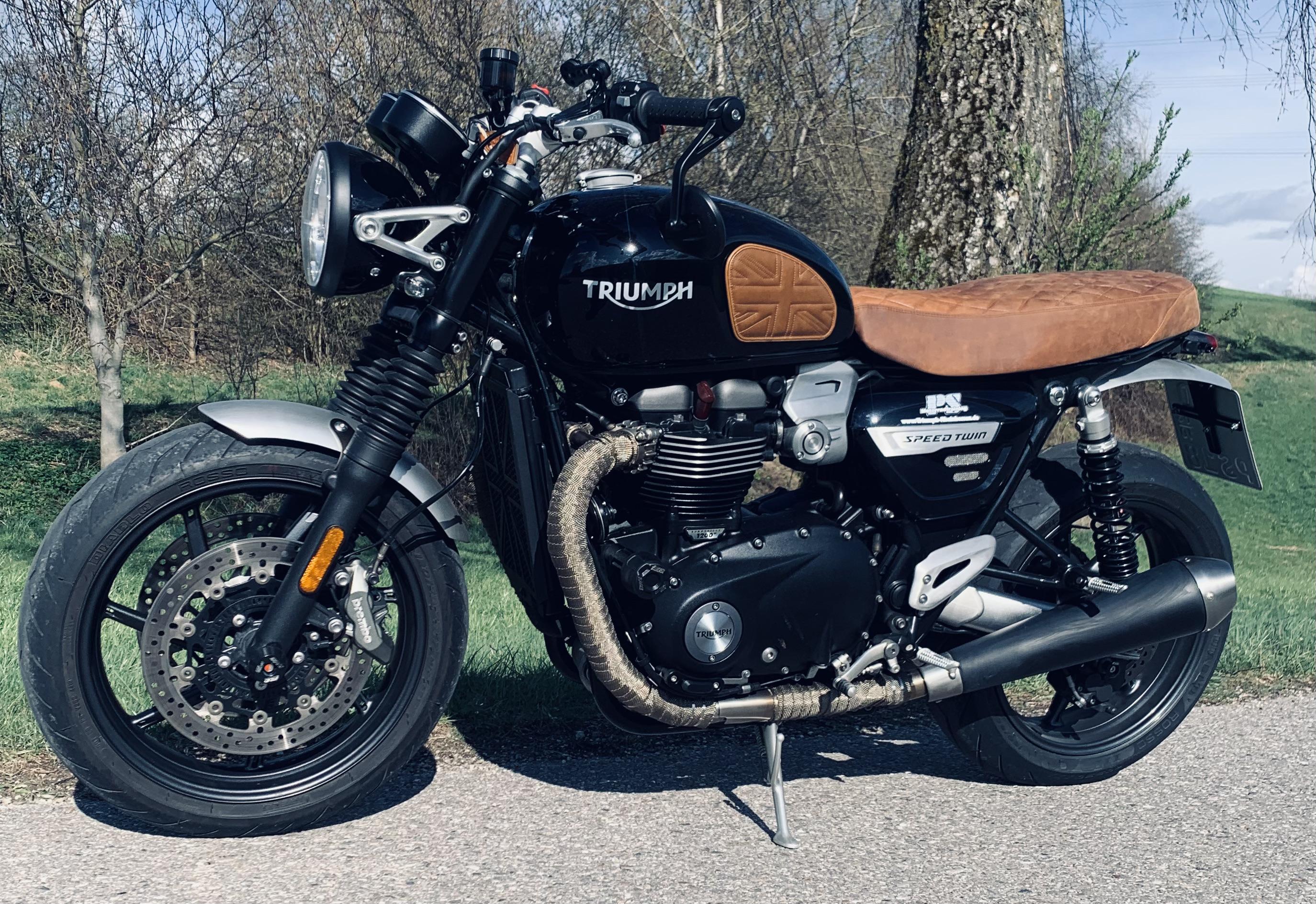 Devil_t Geschrieben vor 1 Stunde report Geschrieben vor 1 Stunde Meine immer sehr gründlich gepflegte Twinny sucht ein neues Zuhause! Weitere Bilder in der Mobile-Anzeige. EZ 28.05.2019 KM 18.661 1 Vorbesitzer Letzte Inspektion : 25.09.2025 bei 18.660 (Ölwechsel incl. Filter (3,4L 10w50 synth.) // Kette + Luftfilter gereinigt + gefettet, Reifen hinten neu = Diabolo Rosso 3, Vorderreifen ok, TÜV neu gemacht, Bremsbeläge ok) Nächste HU 09/2027 Zubehör / Umbauten: Wilbers-Federbeine hinten (Typ 630) Wirth Gabelfedern progressiv + w15-Öl Auspuff x-Pipe von Raisch Krümmer mit Hitzeschutzband gewickelt kurzes Heck mit Rizoma Rücklicht hintere Mini-Blinker Sitzbank von Sattlerei-Sam (München) Kühlerschutz-Gitter CNC-Kettenschutz kurze Brems-/Kuppl.-Hebel Lenkerendenspiegel diverse unauffällige Motor-Sturzpads Achs-Sturzpads Tankschutz-Leder von Raisch USB-Kabel am Lenker Ram-Mount-Navihalter SW-Motech Gepäckträger SW-Motech Packtaschen ‚Legend Gear‘ https://suchen.mobile.de/fahrzeuge/details.html?id=449125991&action=eyeCatcher&cc=1000%3A1500&cn=DE&con=USED&fr=%3A2021&isSearchRequest=true&ms=24400%3B%3B%3Bspeed+twin+1200&od=down&p=%3A13000&ref=srp&refId=40ac268d-03e3-d9b9-5305-fdbacae0eee2&s=Motorbike&sb=doc&searchId=40ac268d-03e3-d9b9-5305-fdbacae0eee2&ssid=116138046131260&vc=Motorbike Zitieren
