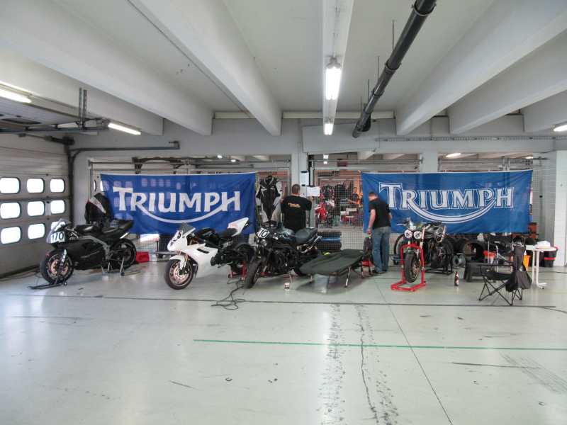 ttt Geschrieben 2. September 2009 report Geschrieben 2. September 2009 Ja war echt ein absolut toller Tag! Die Box war, wie man sieht in fester Triumph Hand. Ich war übrigends wie GerT in der Instruktorengruppe. Leider gabs sehr viele Ausfälle an dem Tag! Wir hatten in Hockenheim mind. 30 Grad und die Leute mit Strassenreifen sind einer nach dem anderen im Kiesbett gelandet. War zwar meist glimpflich bis auf einen, der aber auch nach ein paar Stunden aus dem Krankenhaus wieder entlassen wurde. Zum Glück hab ich mir hier übers Forum noch gebrauchte Rennreifen besorgt und konnte die Speedy mit Grip ohne Ende über den Ring jagen. Hab sogar meine LSL Rasten beidseitig angeschliffen, und die sind kürzer als die Originalen. Vom Reifen und von der Speedy her wär aber noch einiges mehr drin gewesen! Leider wollte der Instruktor die Geschwindigkeit nicht steigern, da von sieben Leuten in unserer Gruppe schon drei abgeflogen waren.(alle mit Strassenreifen) Ein Wechsel war leider nicht mehr möglich, da die schnelle Gruppe schon übervoll war. Naja, vielleicht wars auch besser so. Danke nochmal an die Triumphler aus unserer Box und ich hoffe wir sehen uns! Was ich noch loswerden wollte: Meiner Meinung nach sollte der Veranstalter mit Ausnahme des Getting started Rennreifen zur Bedingung an einem Training machen, da die Straßenreifen hier einfach überfordert sind, den Leute nach einem Sturz nur Geld kosten, und andere gefährden. Was mir auch fehlte war mehr input vom Instruktor. Nur voraus fahren und die Linie zeigen fand ich etwas mau. Gelegenheit gabs ja genug, da jeder mal hinter dem Instruktor fahren durfte. Mehr tips und Ratschläge für jeden einzelnen wären für den Instruktor sehr einfach machbar gewesen. Das zeigte das getting started an dem ich teilgenommen hatte, da wurde jeder einzeln vom Instruktor nach jedem turn herangezogen und und bekam Ratschläge und eine kurze Analyse zum gefarenen turn. Ob das immer so ist oder nur am Instruktor lag kann ich aber nicht sagen! Zitieren
