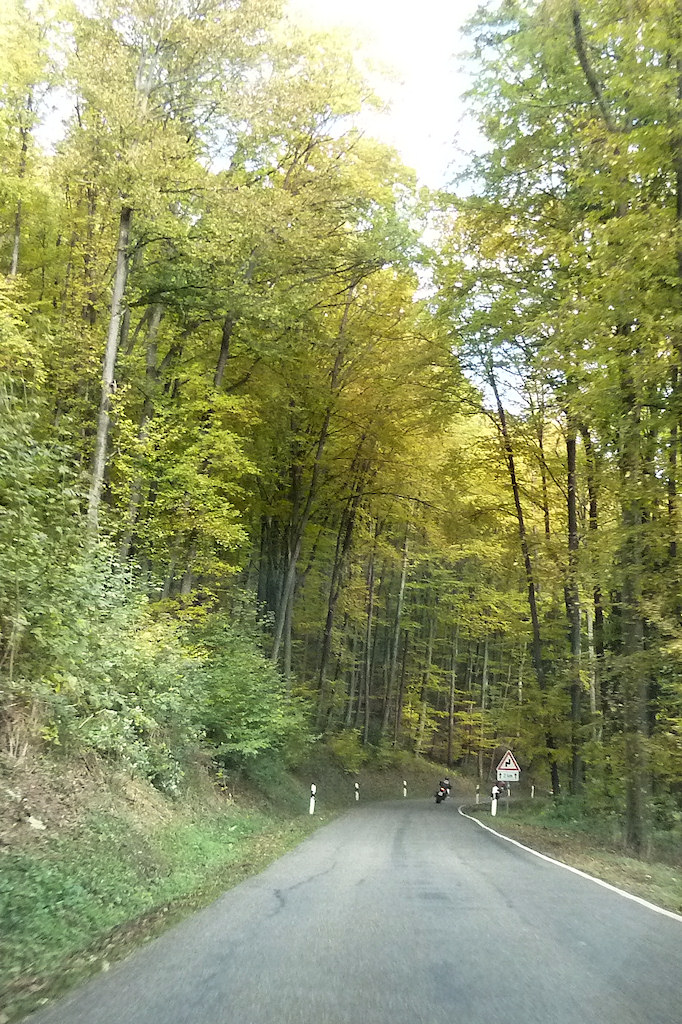 die Sonne mir die Lederkombi wärmt und den Asphalt, der unter mir hinweggleitet, zum Glitzern bringt,