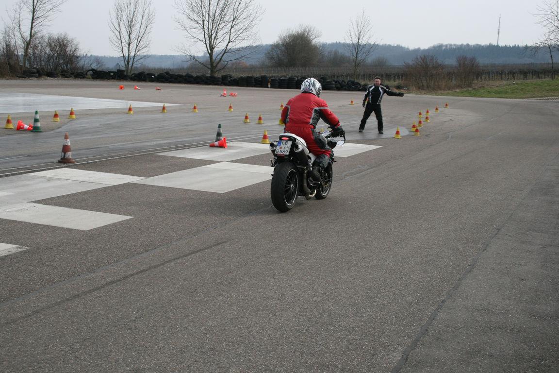 GerT Geschrieben 24. März 2013 report Geschrieben 24. März 2013 Bei 1° Aussentemperatur zum Sicherheitstraining für Motorradfahrer/innen ist nichts was man jetzt unbedingt empfehlen kann. Ein Sicherheitstraining, speziell zum Saisonanfang ist aber etwas das sich JEDER der ein Einspurfahrzeug im Straßenverkehr bewegt überlegen sollte. Es macht Spaß, es gibt auch für alte Hasen noch was zu lernen und es schärft das Bewußtsein für Abläufe die man schon längts verinnerlicht und instinktiv ablaufend wähnt. Wann kann man schonmal geplante Vollbremsungen aus vielen Geschwindigkeiten selbst erfahren. Dieses Traning hat mir eins deutlich gezeigt, auch auf trockener Straße ist ein ABS, hier jetzt speziell das ABS der 1215 Explorer, eine absolut empfehlenswerte Sache. Die Gewalt mit der knapp 400kg auf Null, jederzeit Stabil und einfach kontrollierbar verzögert werden kann ist phänomenal Im Lauf des Tages wurde sogar die Sonne neugierig auf die Action die in Heilbronn vor sich ging und gewährte uns einen superschönen Nachmittag. Hier ein paar Bilder um auf den Geschmack zu kommen: Zitieren