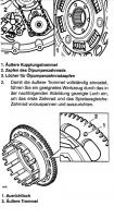 Triple/one Geschrieben 25. November 2013 report Geschrieben 25. November 2013 (bearbeitet) Hallole Bernhard Du siehst ja auf der Zeichnung das Ölpumpenrad mit den Zapfen und der 2 gekennzeichnet. Dann siehst Du den Kupplunkskorb mit den Löchern für die Zapfen des Ölpumpenrades, mit 3 gekennzeichnet. So nun ist in dem Großen Zahnrad, das am Kupplungskorb ist, ein weiteres Loch, das hier mit einer 1 gekennzeichnet ist. Also dieses Loch mit der 1 ist dazu da, das Spielausgleichszahnrad vorzuspannen.Das hat den Sinn, das die Zahnräder die ins Getriebe gehen und die Ausgleichswelle Spielfrei zusammengebaut werden.Wenn da Spiel in den Antrieb kommt, gibt es Schaltprobleme und es könnte auch Karies an den Zahnrädern entstehen. Grob gesagt, Du spannst den ganzen Antrieb, Ausgleichswelle, Zahnrad und Kupplung vor.Damit alles etwas unter Spannung oder Zug steht und nicht schlaff in der Gegend rumnoddelt und schlackert. Das Große Zahnrad sind ja eigentlich zwei Zahnräder.Das eine große ist das Spielausgleichszahnrad.Dieses muss etwas vorgespannt werden.Dazu benötigt man, einen Excentrisch geschliffenen Dorn, oder Bohrer. Mit diesem kann man dann durch verdrehen, das eine Zahnrad, etwas verspannen. Ich hoffe das ich das richtig erklärt habe.Man möge mich korrigieren wenn was falsch ist. Grüßle Bearbeitet 25. November 2013 von Triple/one Zitieren
