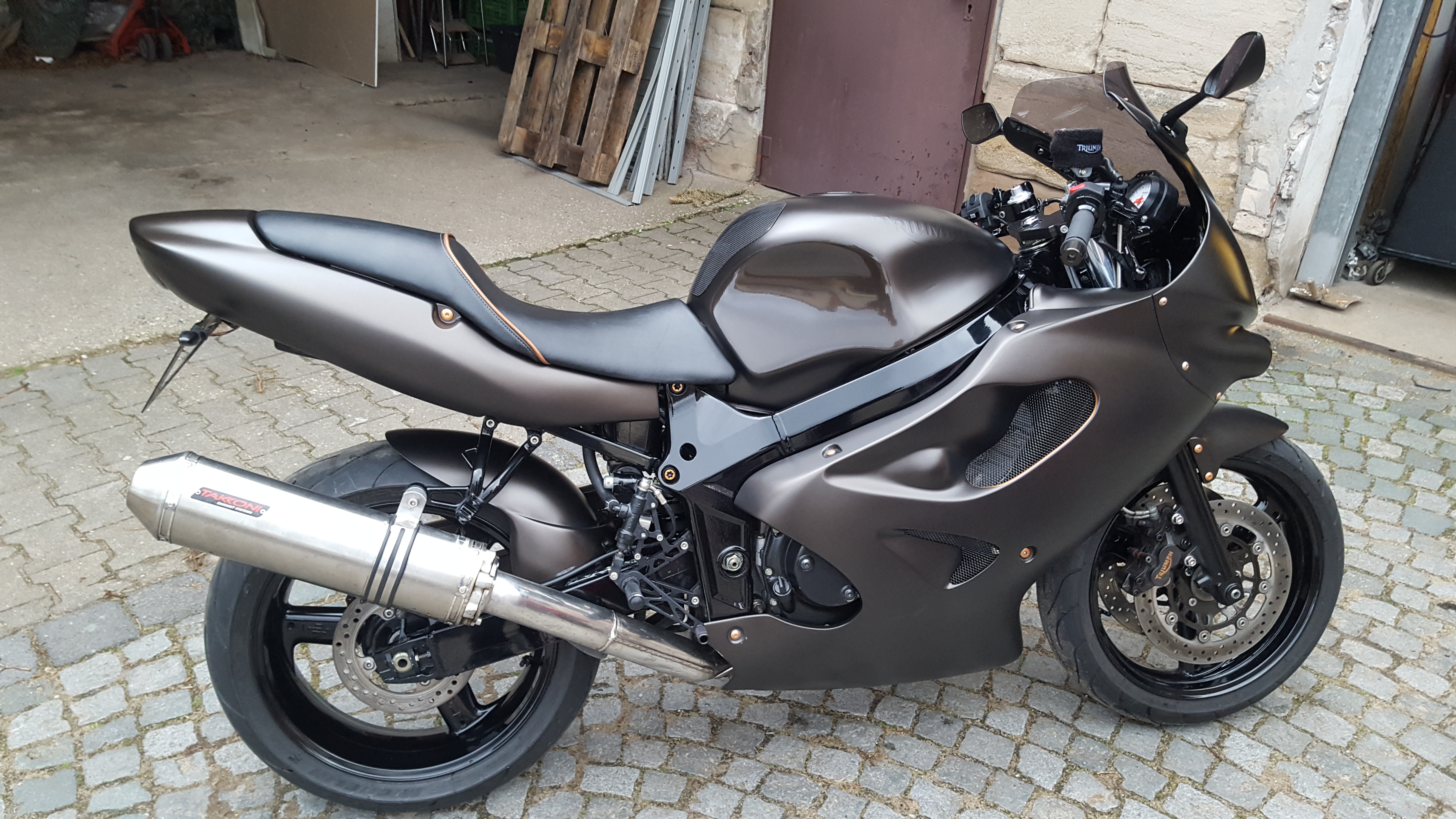 Triumphtt600 Geschrieben 22. März 2018 report Geschrieben 22. März 2018 (bearbeitet) Hey Freu mich zusehen ma andere Triumph tt 600 aktive im Forum anzutreffen. Um auf das Thema einzugehen Ich habe mein baby 2015 gekauft mit 25tkm auf der Uhr Stand sehr gut da und lief auch gut. Bei nem blöden Fahrfehler beim ersten Ausritt is es dann leider passiert...Felgen hatten nen Treffer und die Kanzel sowie die Rechte Seite waren in Mitleidenschaft gezogen 😓 Wollt erst weil ich ja immerhin über 200 damit fahre nix an ihr selber schrauben was Fahrwerk etc betrifft. Somit hab ich die Kanzel repariert und ein neues Seitenteil besorgt. Von einem Händler hab ich mir dann gebrauchte Felgen(neue Radlager) mit neuen Gummis und nen kettensatz drauf machen lassen, was ein großer fehler war weil er nich wie gewünscht alle Lager gewechselt hat und die alte verbogene ritzel unterlegscheibe wieder verbaut hat.😲😠😡 Somit fuhr Sie iwie schieße weil nach kurzer Zeit das nich getauschte Lager im kettenradträger sich verabschiedete. Nachdem das übel dann beseitigt war musste ich leider feststellen das mein kettensatz sehr in mitleidenschaft gezogen wurde, sowie der rückstoßdämpfer und der kettenradträger. Was mich dazu gebracht hat dann doch selbst zu Schrauben. 2016 hab ich sie dann komplett zerlegt und lackieren lassen und alles auf Herz und Nieren gecheckt und das ein oder andere ausgetauscht. Hab a nen K&N luftfilter sowie sportauspuff verbaut was dazu führt das sie nen unrunden Leerlauf hat, sich bei abrupten gas geben verschluckt und bei um die 4300 rpm ab dem 3ten gang das ruckeln anfängt, sie will halt gedreht werden. Abhilfe schafft da nur ne Abstimmung auf nem Leistungsprüfstand wo es 2 Optionen gibt entweder man lässt die ecu überschreiben was bedeutet das man beim TÜV probs bekommen kann und nich einfach hin und her zwitschen kann oder man nimmt nen powercommander der aber auch bei Einbau die betriebserlaubnis erlöschen lässt. Bei mir steht aber a noch ne abstimmung an bin schon am sparen 😉 Ansonsten kann ich nur sagen das es ein seltenes geiles Moped ohne schnick schnack und Hammer Fahrwerk ist!!!! I love it Bearbeitet 22. März 2018 von Triumphtt600 Zitieren
