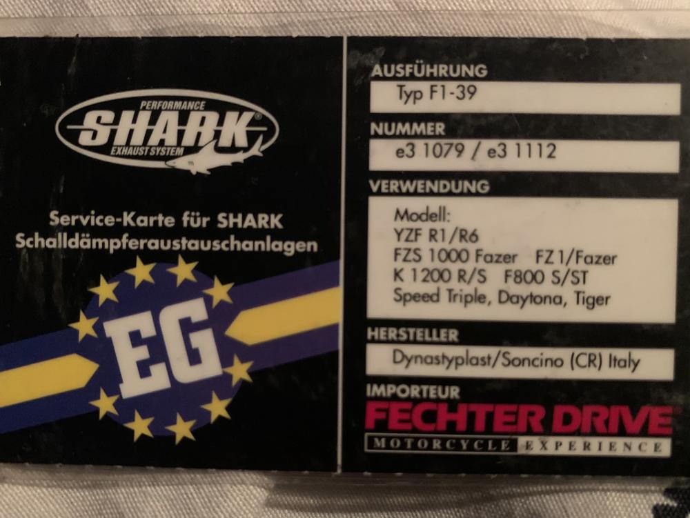 East Geschrieben 14. Oktober 2020 report Geschrieben 14. Oktober 2020 Falls Du Dir einen Shark DSX-1 zulegen möchtest, für die Speedy nicht mehr zu bekommen, ABER für andere Modell noch zu bekommen, am besten mal mit dem starfighter1967 in Kontakt treten. Anbei noch ein Foto der ABE auf welcher die anderen Motorradtypen aufgeführt sind. Zitieren